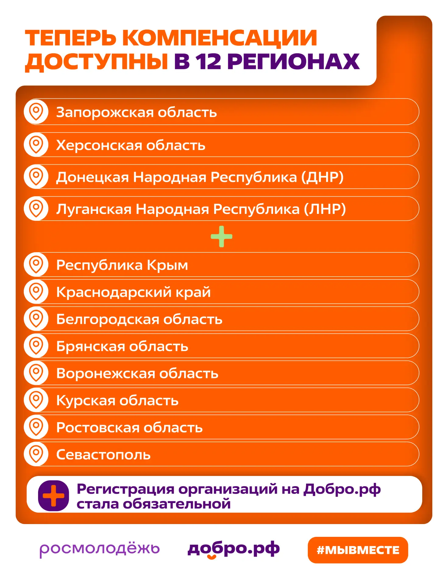 Срок рассмотрения заявок на проведение миссии сокращён и унифицирован. География гуманитарных миссий расширена до 12 регионов. Помимо ДНР, ЛНР, Запорожской и Херсонской областей, в перечень включены Белгородская, Брянская, Воронежская, Курская, Ростовская области, а также Краснодарский край, Республика Крым и Севастополь.