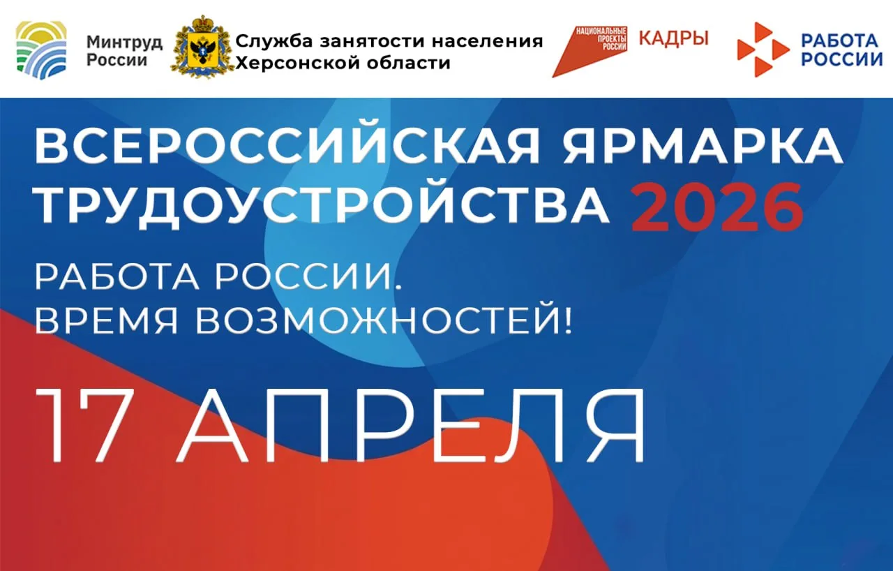 Региональный этап Всероссийской ярмарки трудоустройства «Работа России. Время возможностей» состоится 17 апреля в Херсонской области. Мероприятие ежегодно охватывает всю страну и демонстрирует растущий интерес со стороны работодателей и граждан различных категорий.