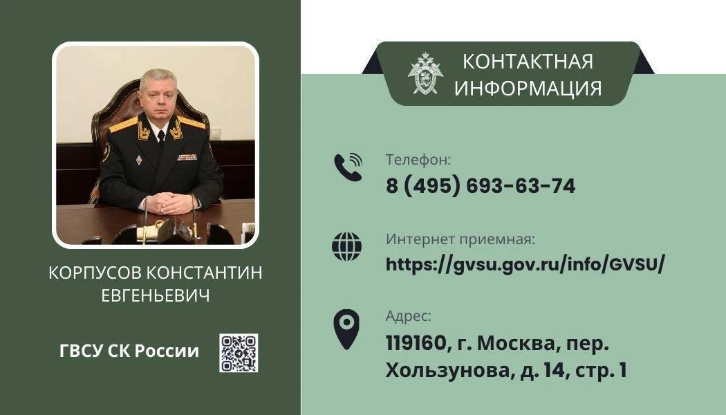 По вопросам, относящимся к компетенции военных следственных органов, граждане могут обратиться к руководителю ГВСУ СК России по указанным адресам.