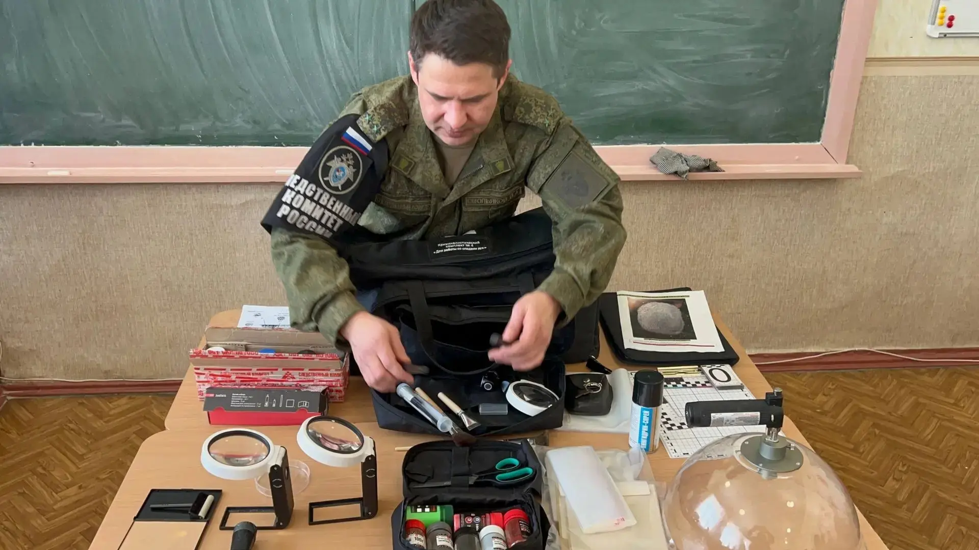 В рамках профориентационной работы офицеры военного следственного управления СК России по Объединенной группировке войск (сил) организовали и провели практическое занятие для воспитанников кадетского класса военных следственных органов ГБОУ «Школа № 2 имени Героя Советского Союза Ю.М. Двужильного» г.о. Донецк.