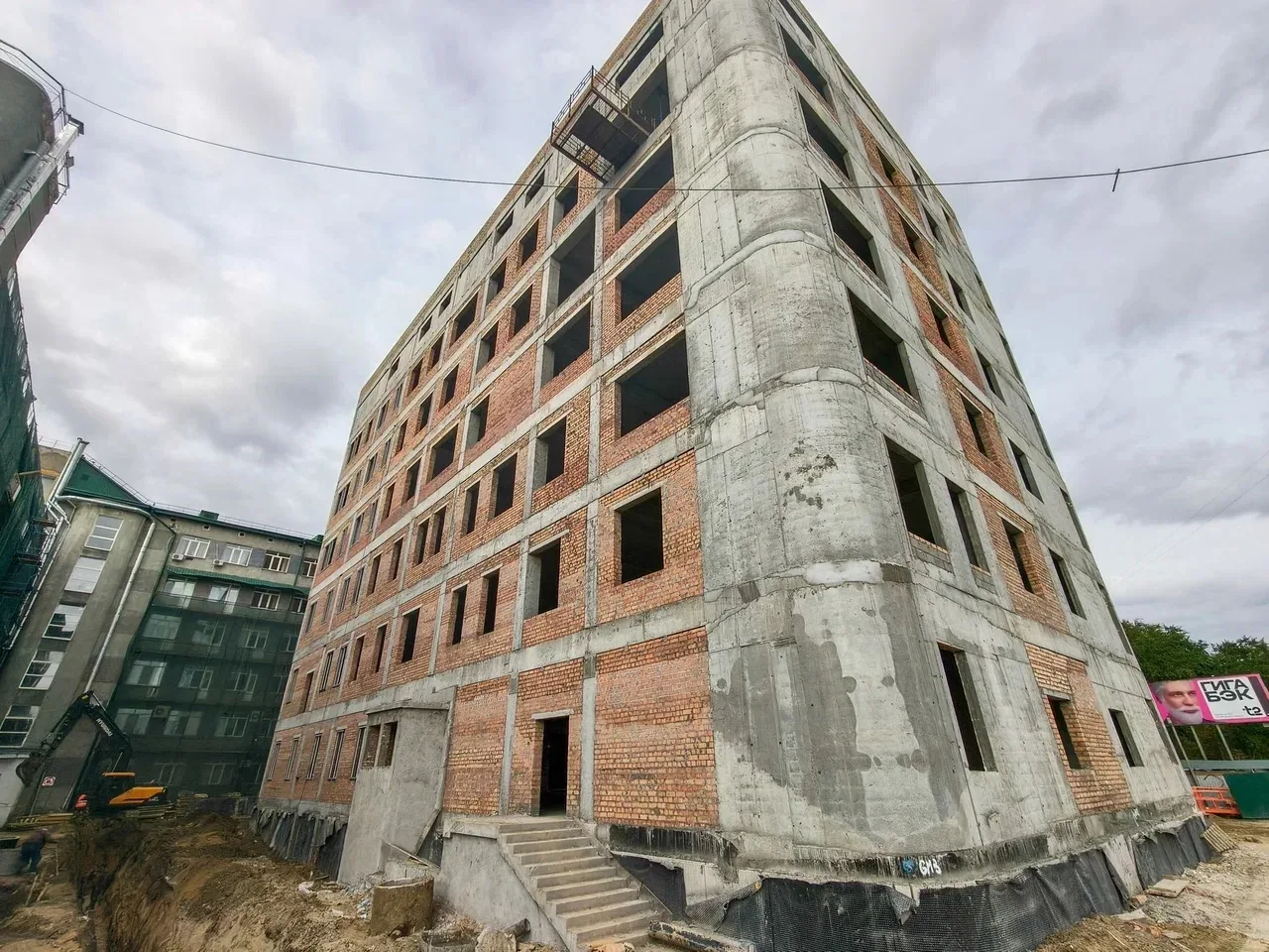 Строительство нового операционного корпуса КМХЦ идёт по графику. Все 7 этажей готовы, сейчас бригады строителей приступили к монтажу кровли, установке окон, возведению внутренних стен и перегородок. Полным ходом идут работы по подведению инженерных коммуникаций.