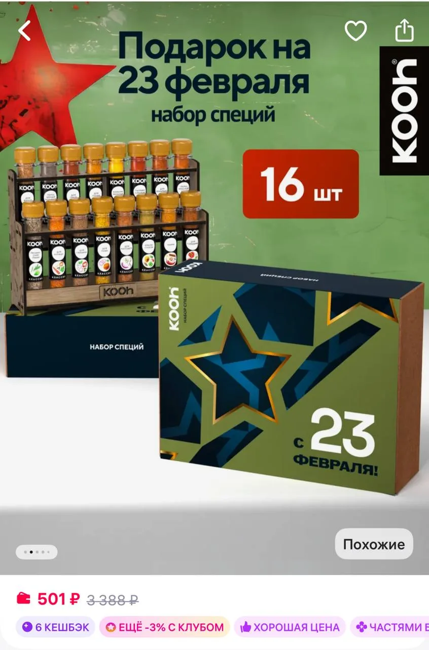 🩷 Подарочный набор специй на 23 февраля мужчине коллеге, 16 шт https://www.wildberries.ru/catalog/218217581/detail.aspx?size=347444064