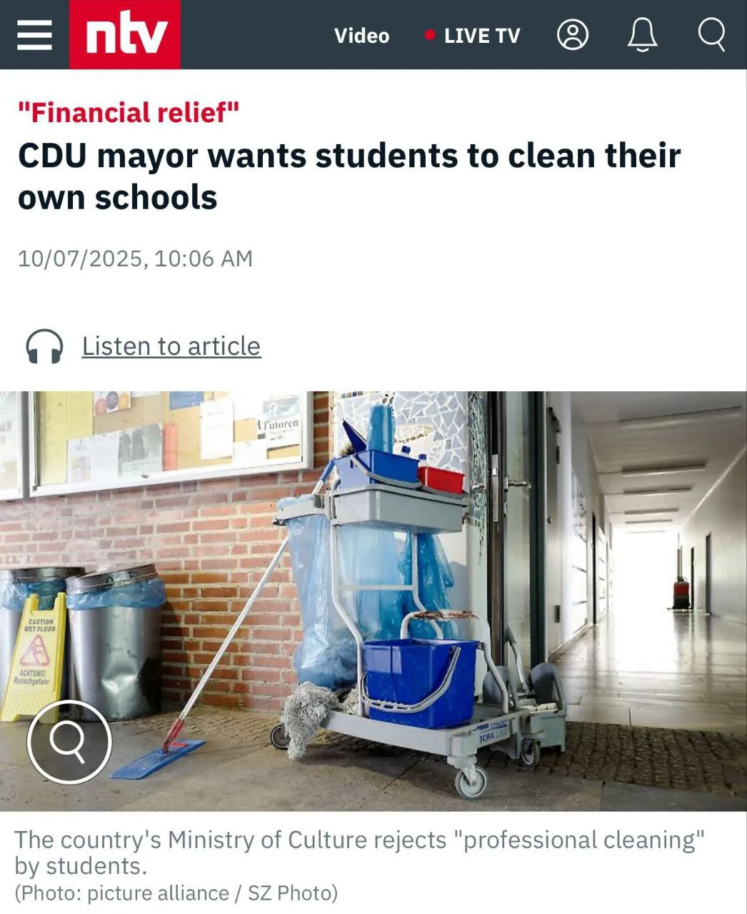Как бы еще сэкономить - подумали немецкие политики и предложили, чтобы школьники сами убирали школы для экономии денег.