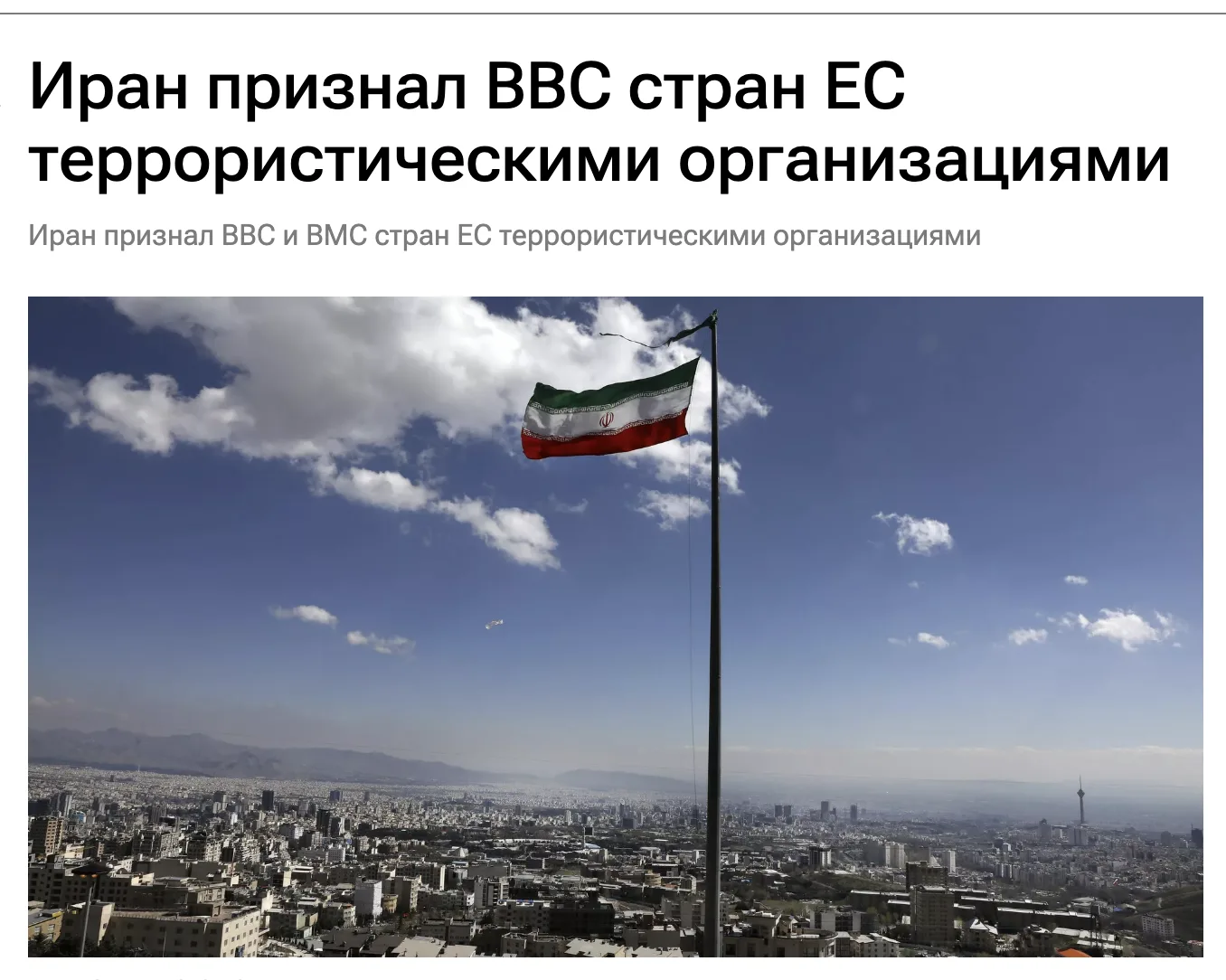 Иран признал ВВС и флоты стран Евросоюза - террористическими организациями!