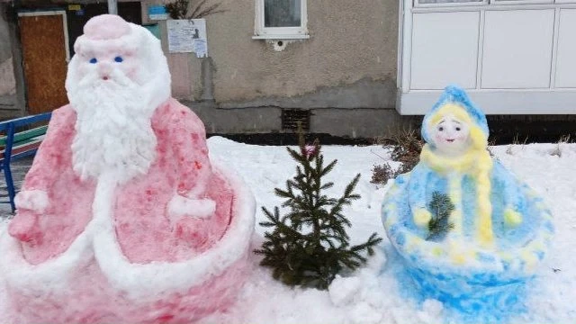 У жителей посёлка во дворе одного из домов по адресу переулок Центральный, 11 появились сказочные персонажи. Автор фото утверждает - из снега их слепила его бабушка Инна Леонидовна.