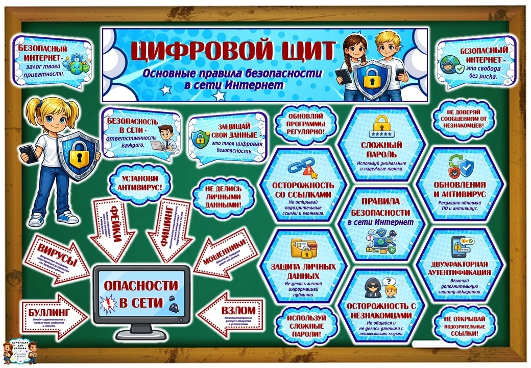 ❤ Оформление доски "Цифровой щит. Основные правила безопасности в сети Интернет"