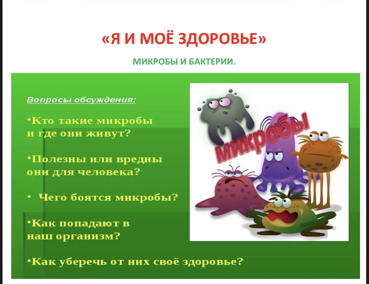 Я и мое здоровье. Микробы и бактерии.