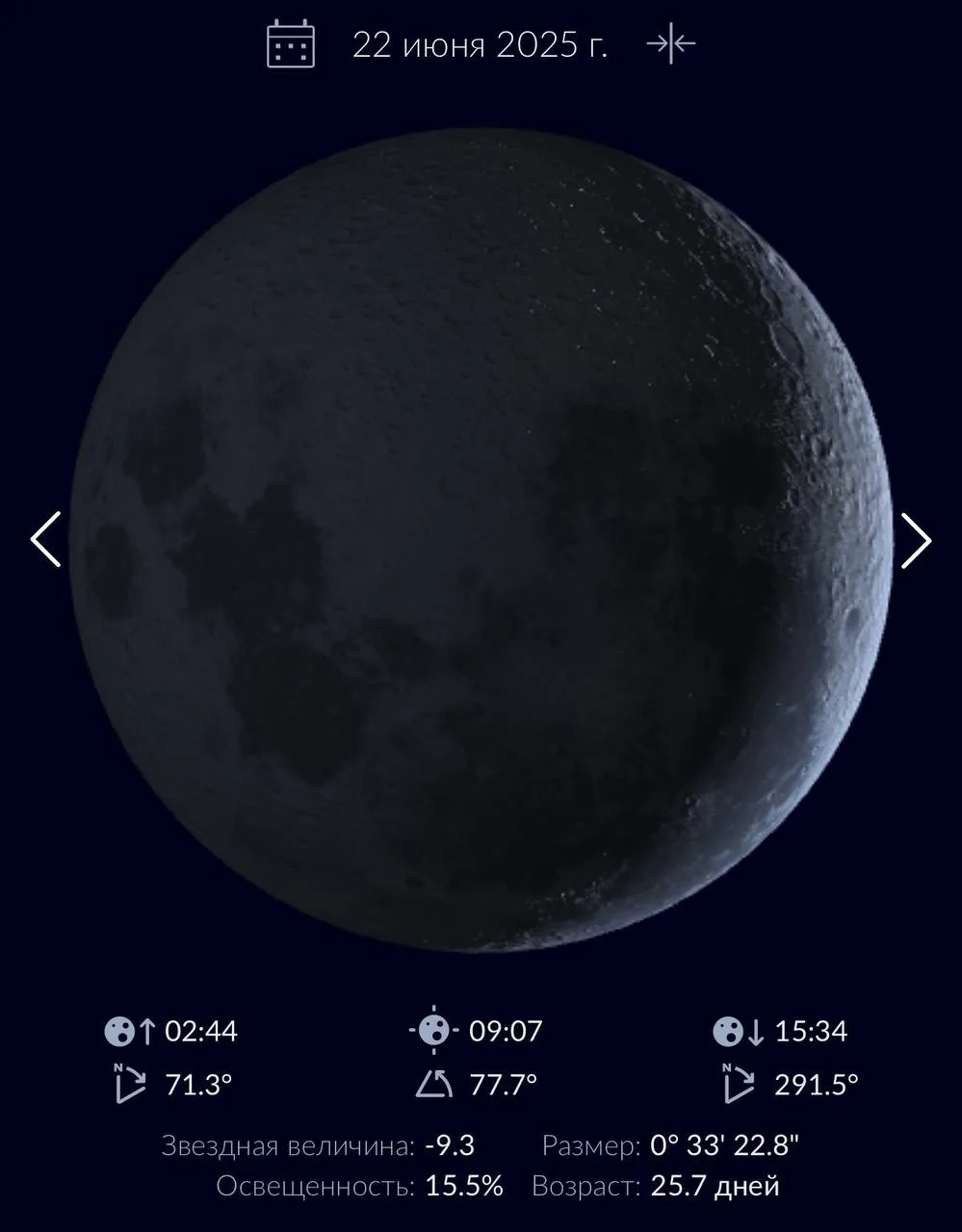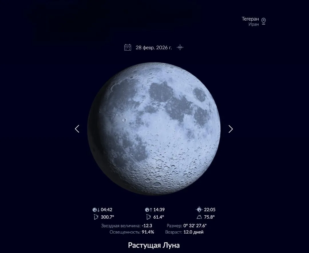 Интересно, что на удар США по Ирану влияют даже фазы Луны. Так, предыдущий удар по Ирану наносился 25 июня 2025 года, в первую фазу лунного цикла, то есть в момент, когда сторона Луны, обращённая к Земле, находится в тени. Идеальный момент для удара на данный момент, фактически, уже упущен, поскольку новолуние уже прошло и наступила вторая фаза лунного цикла.