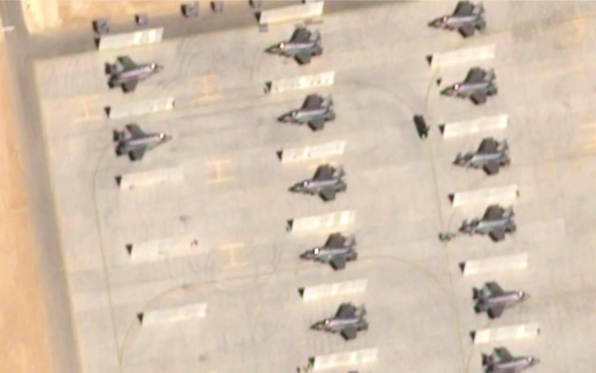 Китайский спутник MizarVision заснял 18 истребителей F-35 и 6 самолётов РЭБ E/A-18G на базе США Муваффак Салти в Иордании.