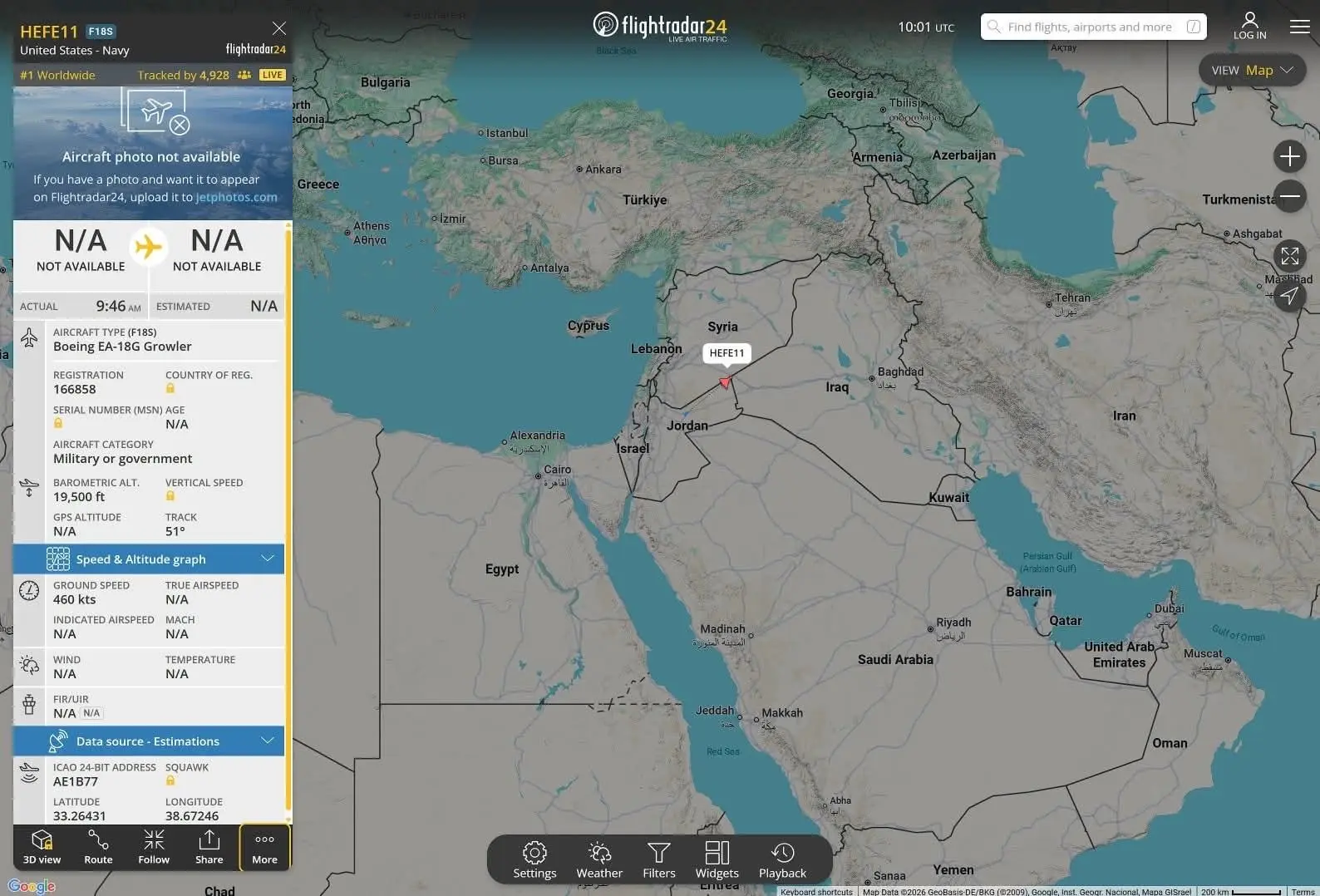 Также, судя по всему, активизировались и самолёты РЭБ EA-18G Growler, которые работают в связке с «аваксами». Машины двигаются вдоль границы Иордании с Ираком и Сирией в сторону Ирана. От ближайшего к Тегерану города со стороны Ирака им лететь всего 450 км.