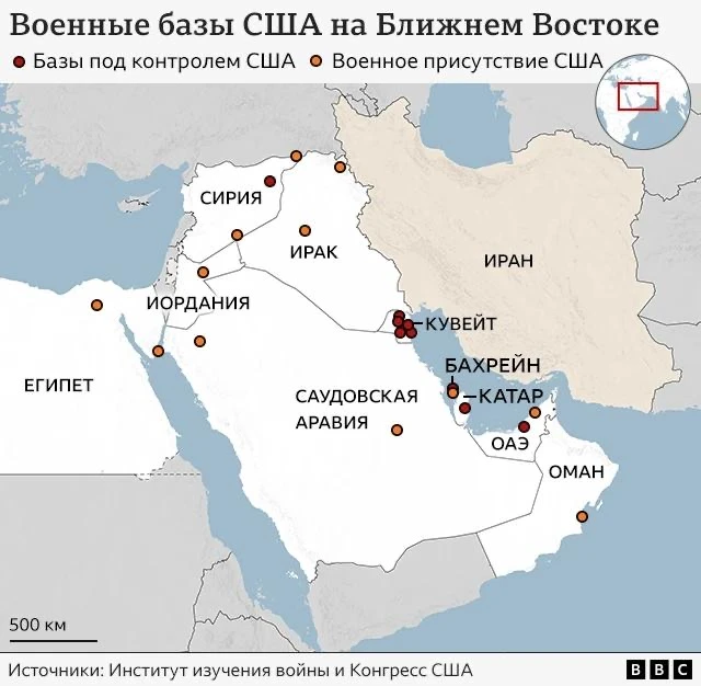 По данным израильского 12-го канала, Пентагон развернул системы противовоздушной и противоракетной обороны THAAD и Patriot примерно на 20 военных базах в Иордании, Кувейте, Бахрейне, Саудовской Аравии и Катаре.