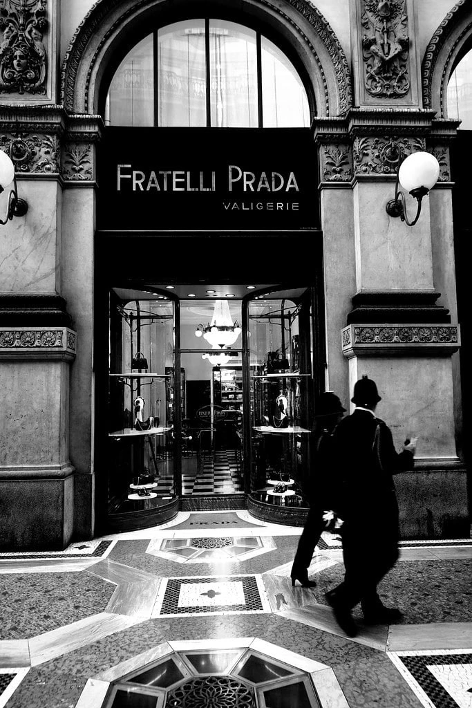 В 1913 году Марио Прада открыл в миланской Galleria Vittorio Emanuele II магазин Fratelli Prada — бутик кожаных чемоданов, дорожных сумок, футляров и аксессуаров для путешествий.