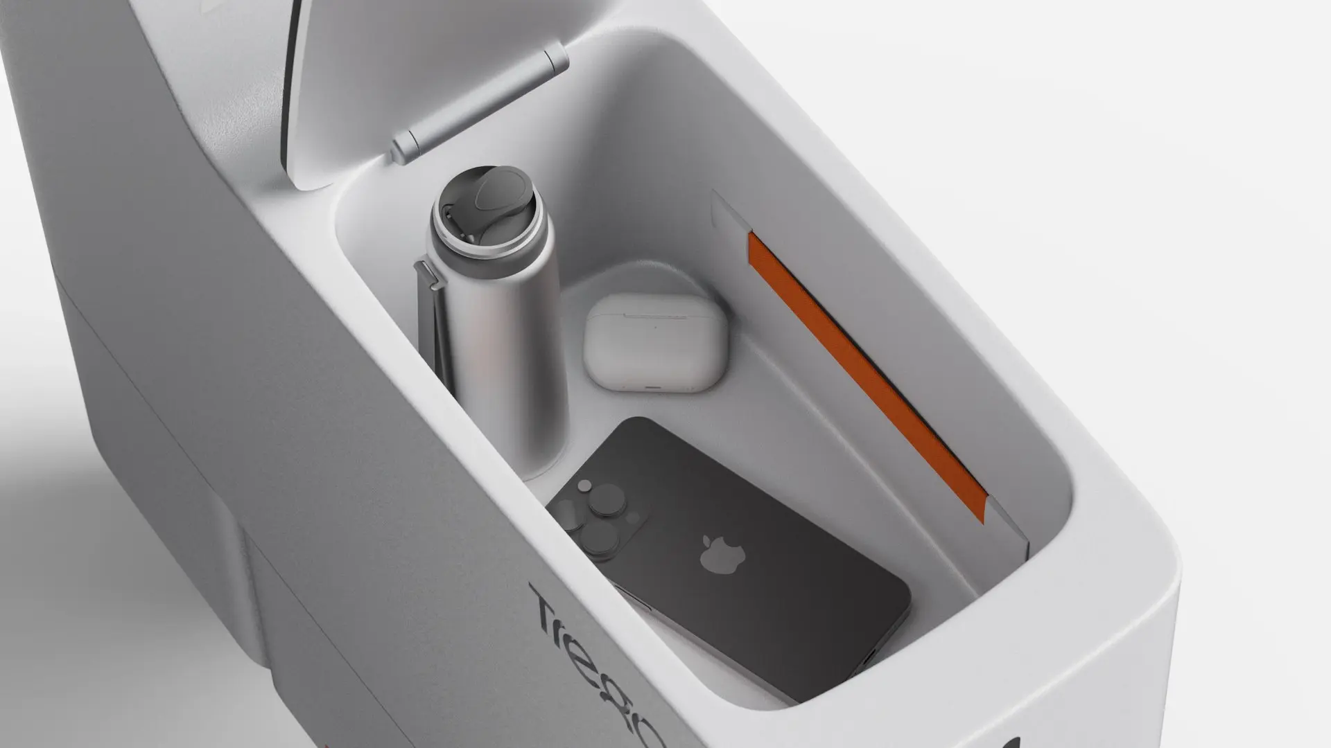 Руль и подножки скутера автоматически скрываются внутри кузова во время забега, а прямо под сидушкой предусмотрен отсек для трёх самых важных в мире вещей: смартфона, термоса и эйрподсов.
