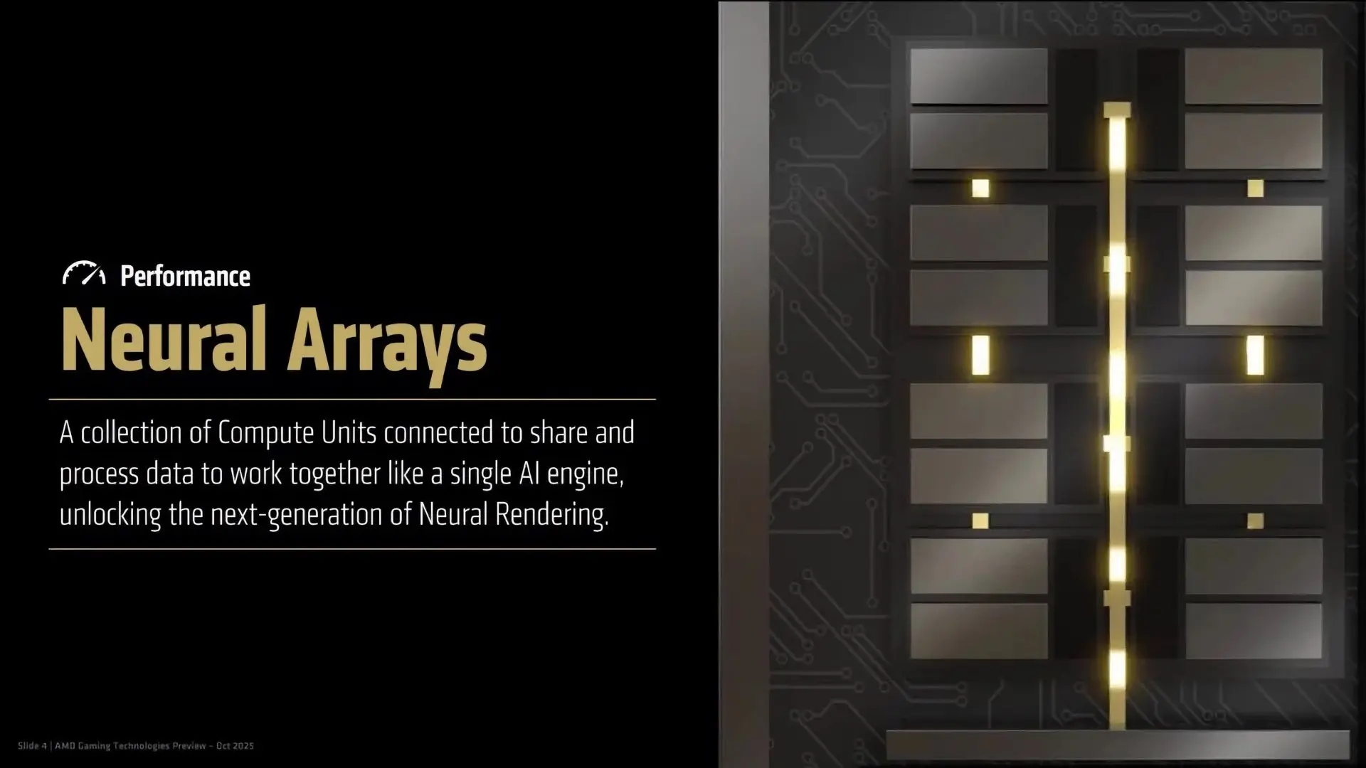 Специалисты начали рассказ с Neural Arrays (нейронных массивов). По сути, это новый способ работы вычислительных блоков чипов для нейросетей, при котором они работают как единое целое. Это увеличивает скорость вычислений и, как следствие, скорость апскейлинга и рендеринга кадров. Необходимо это для работы генераторов FSR и PSSR.