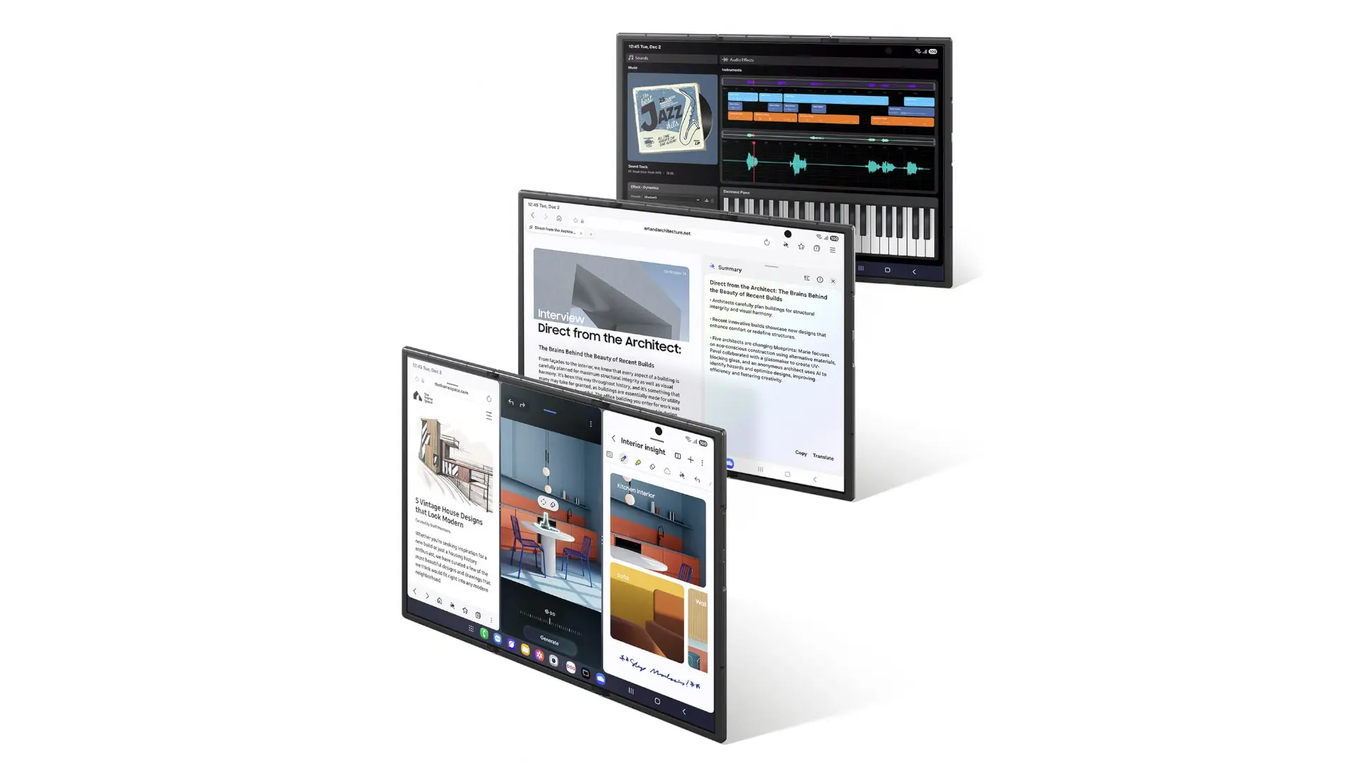В полностью разложенном состоянии новинка занимает всего 159,2 × 214,1 × 3,9 мм — на первый взгляд «Трифолд» на 0,3 мм тоньше OPPO Find N5, однако Samsung приводит цифры без учёта заводской защитной плёнки и, конечно же, без учёта выступов под камеры.