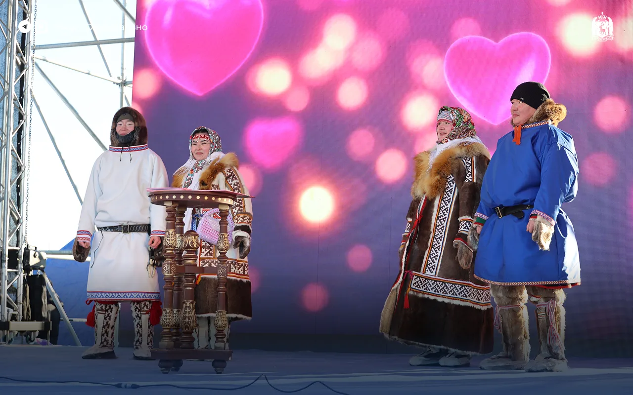 Для двух пар ямальцев марш Мендельсона звучал сегодня прямо на главной сцене Дня оленевода в Тарко-Сале 💍
