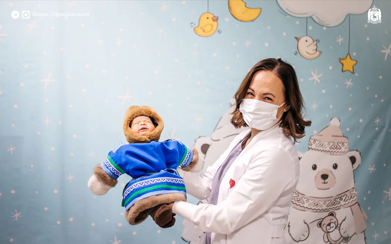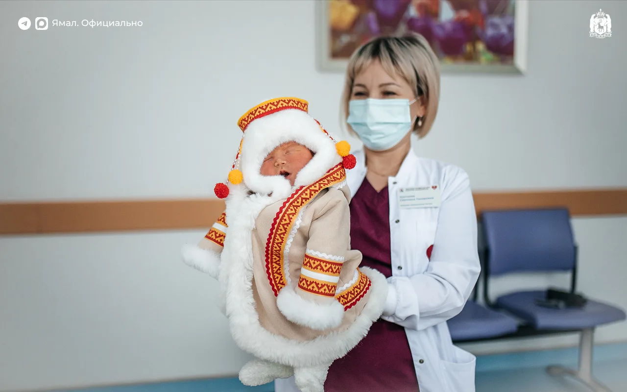 В честь 95-летия округа в перинатальном центре Ноябрьска малышей сегодня выписывают в национальных костюмах коренных народов Севера. Мальчиков – в праздничных малицах с капюшоном, девочек – в ягушках и повязках с помпонами. К каждому наряду идут меховые рукавички.