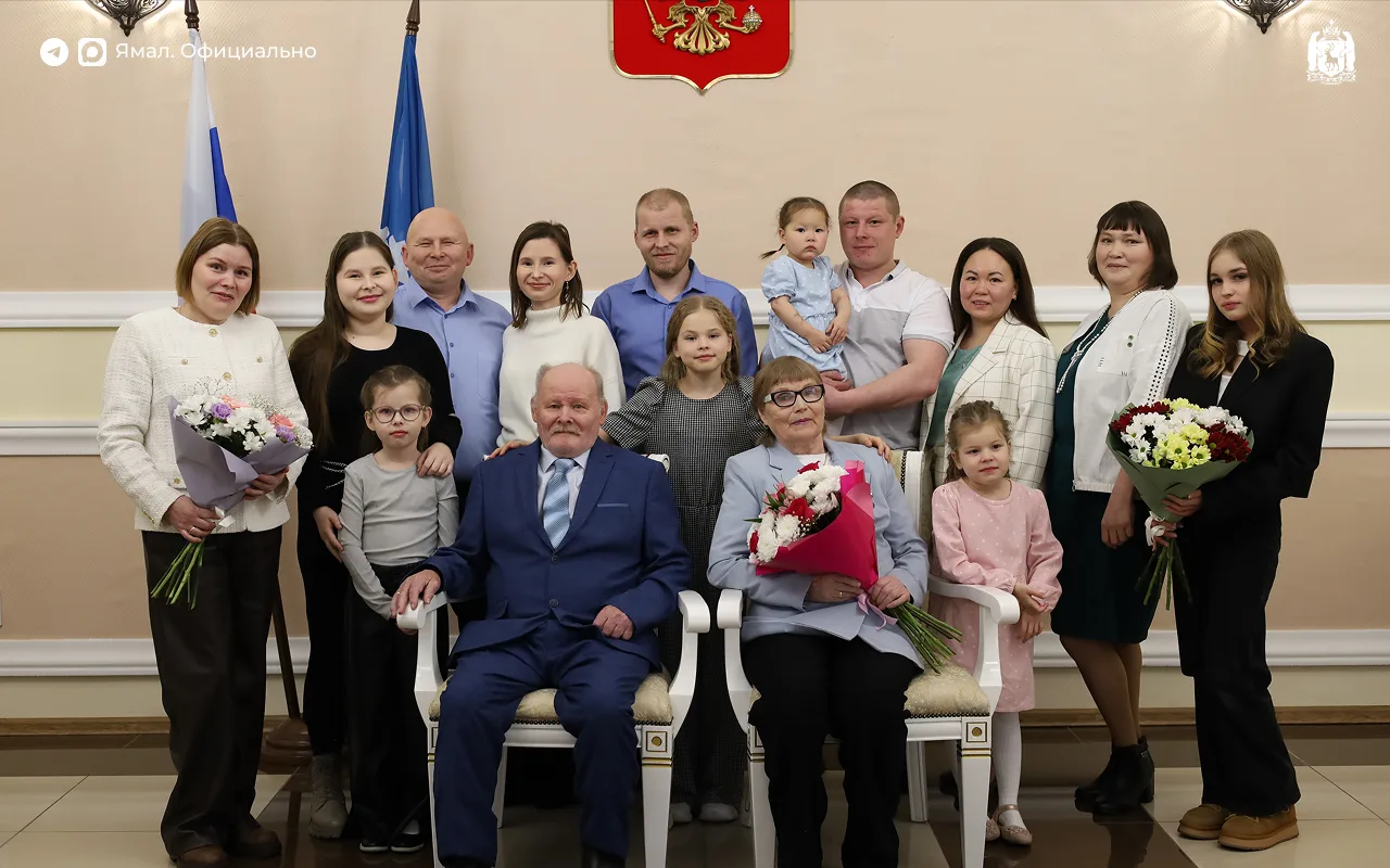 В браке у супругов появилось шестеро детей – пять дочерей и сын. Сейчас у юбиляров уже 16 внуков и три правнука.
