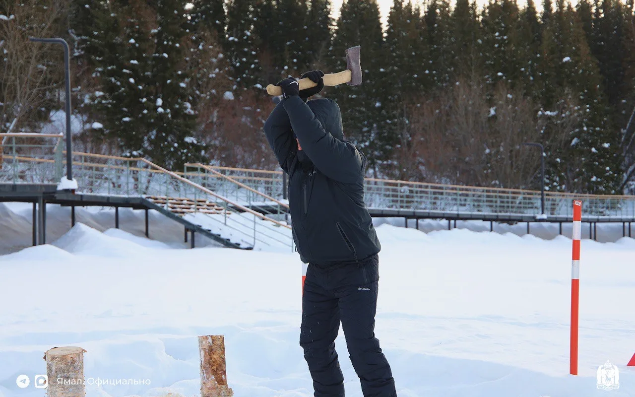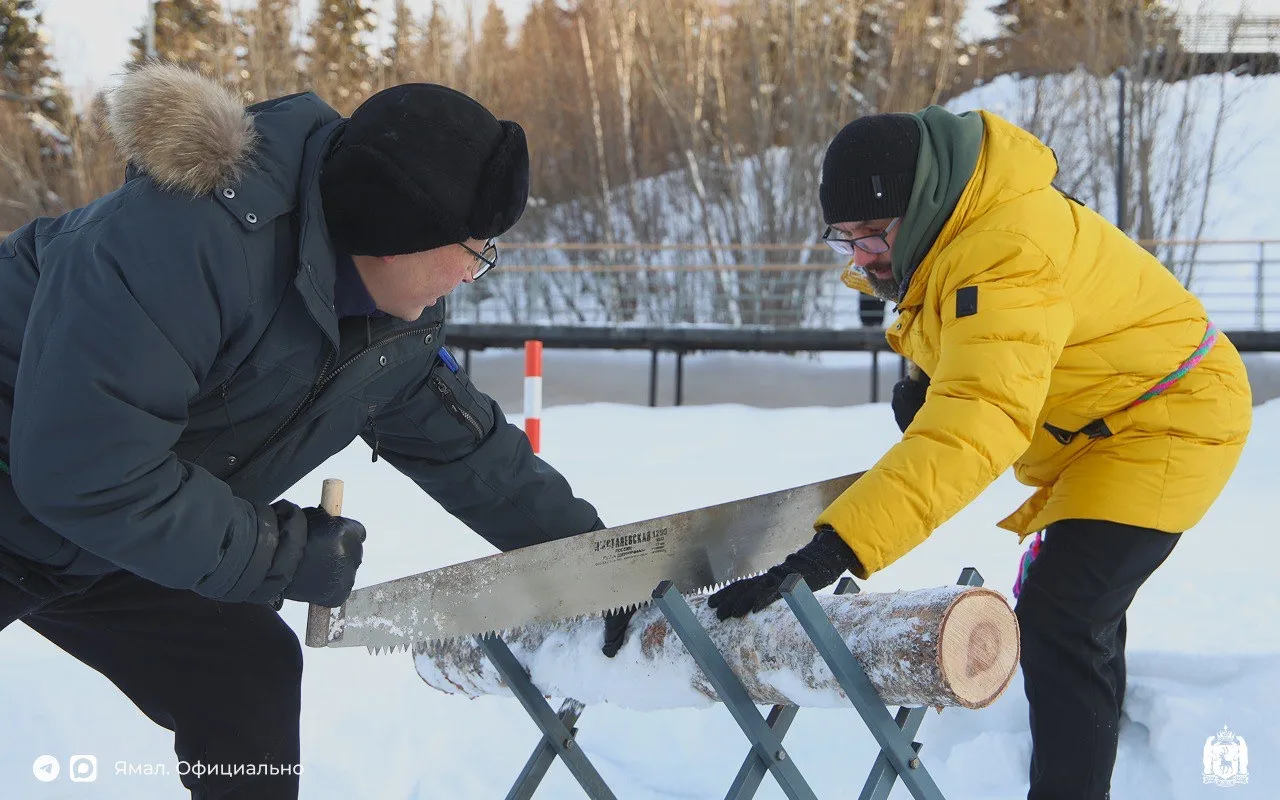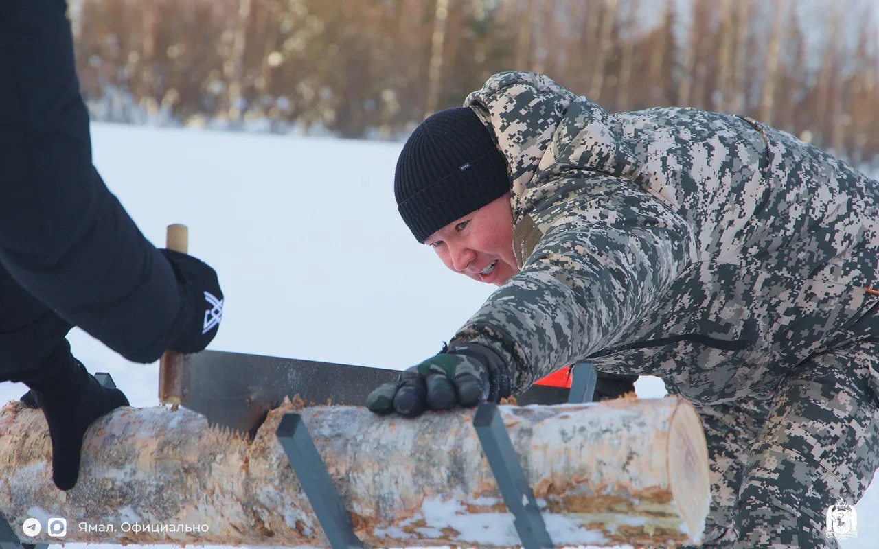 В ней приняли участие шесть команд из разных организаций. Судьи засекали время, а участники очищали площадку от снега, пилили брёвна и кололи дрова на скорость, играли в хоккей баскетбольным мячом.