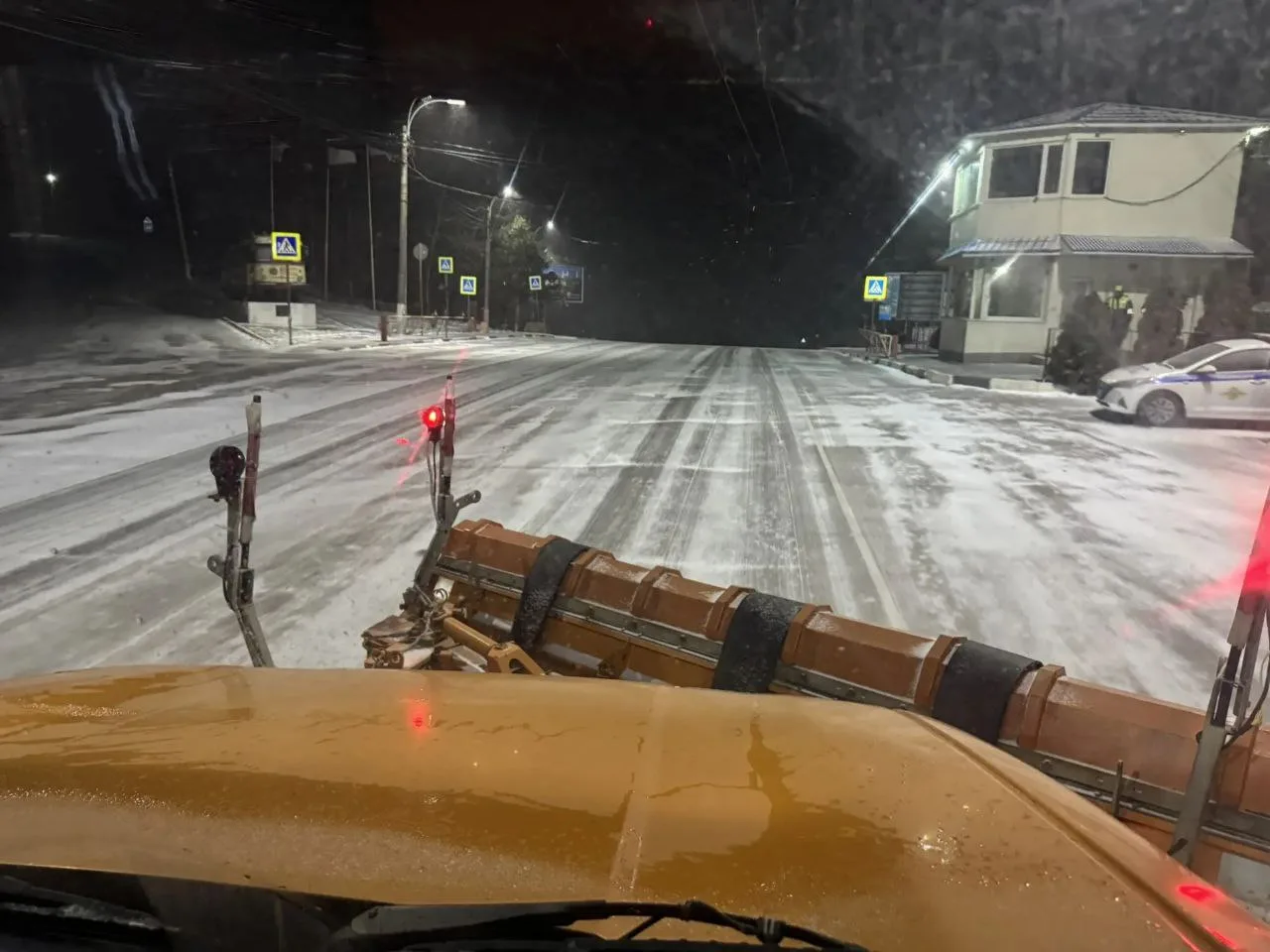🔹 Ялта — 0°С, мелкий снег, порывистый ветер. Покрытие мокрое, обработанное.