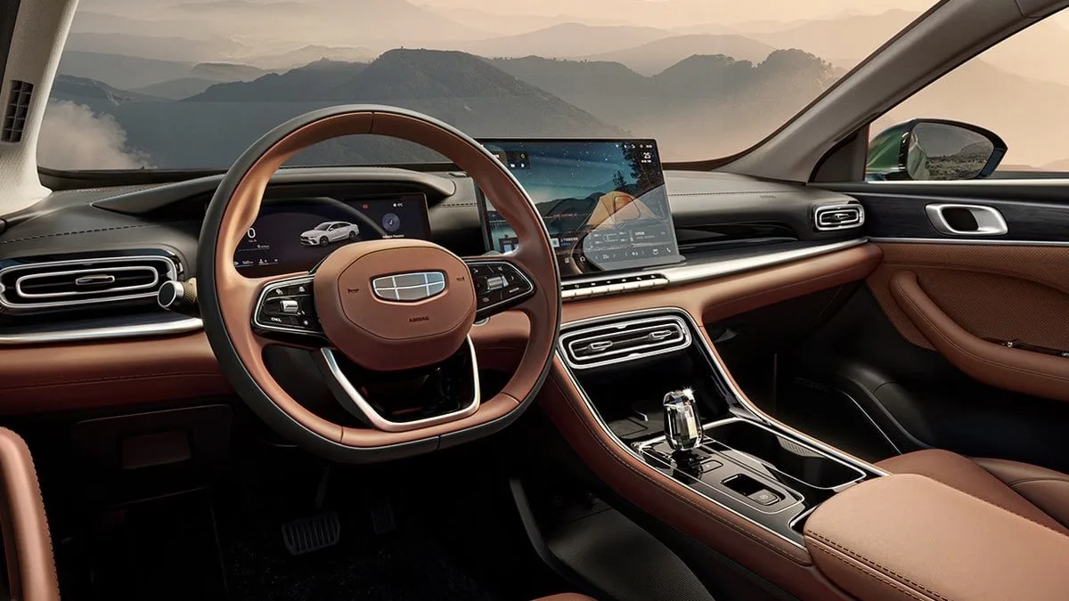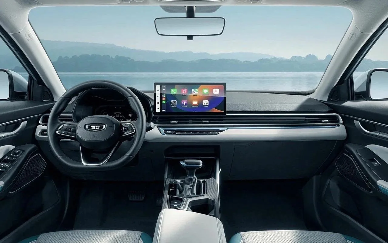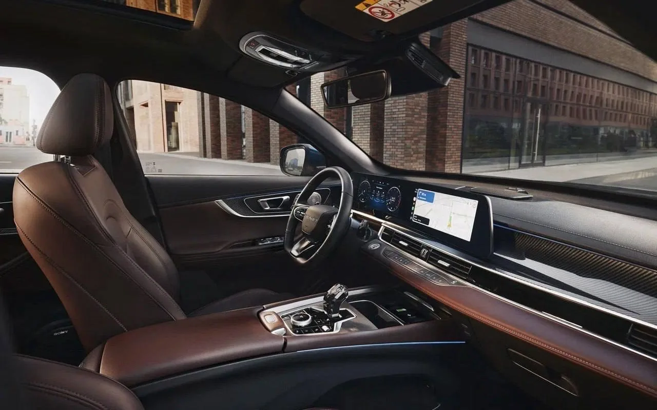Интерьер выполнен в минималистичном стиле с большим экраном мультимедийной системы и отдельным дисплеем приборной панели. Предусмотрена поддержка Apple CarPlay и Android Auto, беспроводная зарядка для смартфона мощностью 50 Вт, два порта Type-C и два источника питания 12В.