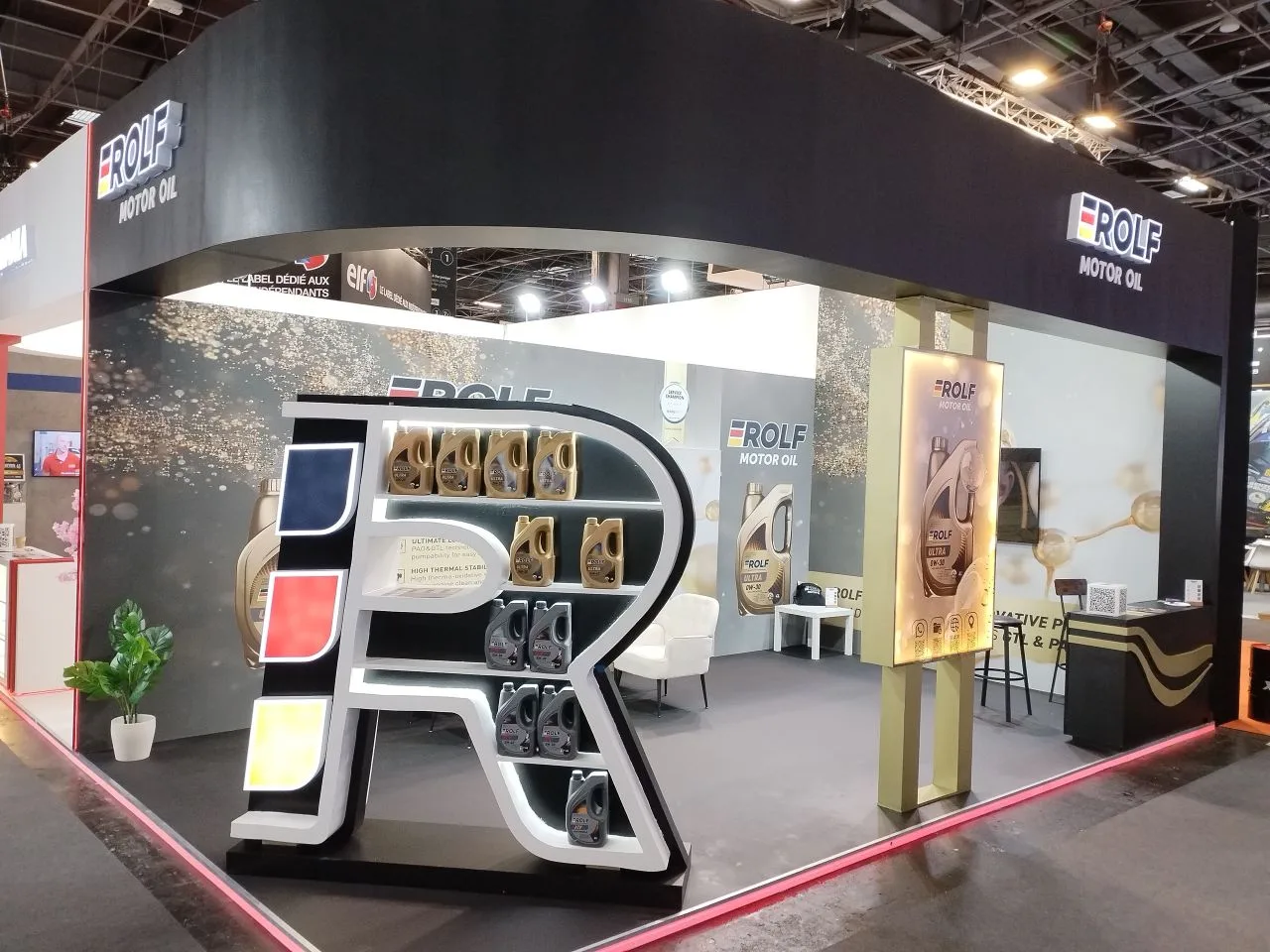 Среди мировых брендов особенно приятно было увидеть и знакомый Rolf. Их стенд выглядел уверенно. На полках — масла, произведённые для разных рынков Европы и Азии, включая страны СНГ. Чёткая структура ассортимента, понятные линейки, фокус на технических особенностях, стильный дизайн — всё выглядело эстетично и профессионально.