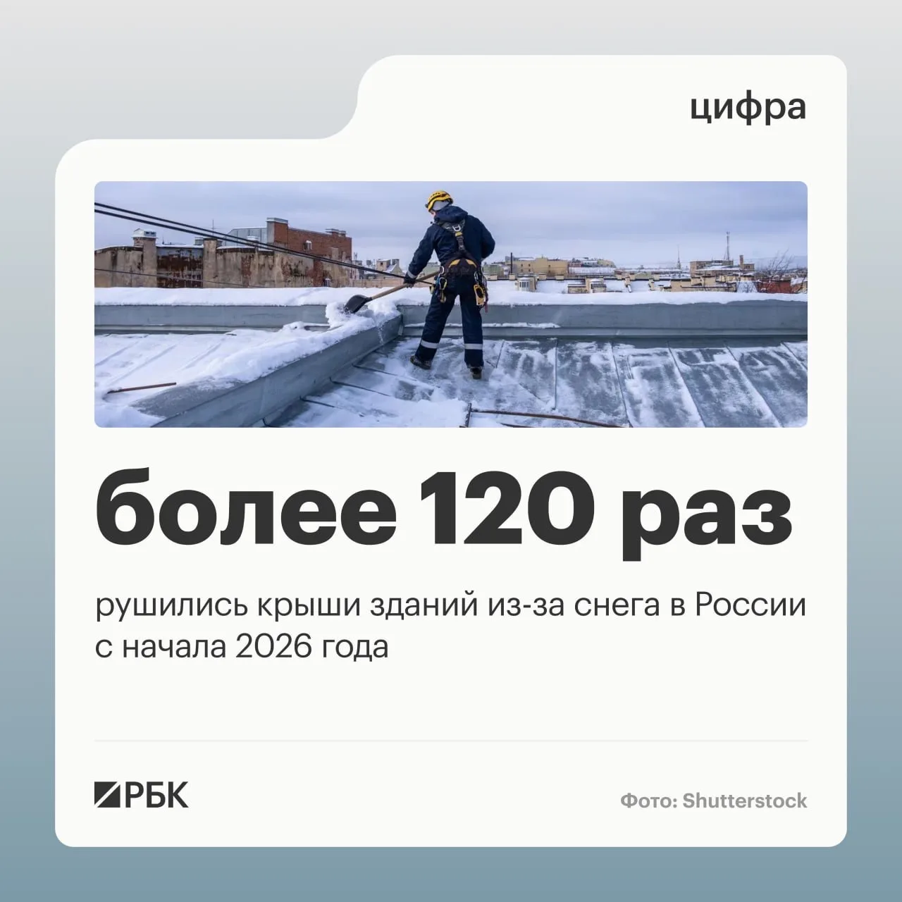 Свыше 120 случаев обрушения крыш зданий было зарегистрировано с начала 2026 года в России, 60 из них произошли только за последнюю неделю. Об этом сообщили в МЧС.