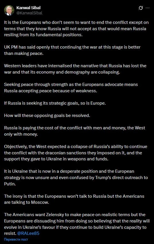 - Их единственная надежда состоит в том, что они нанесут поражение России на территории Украины. После чего потребуют с поверженной России выплаты репараций и таким образом отобьют все свои затраты. Это трудно комментировать. Напомню лишь, что Наполеон и Гитлер уже пытались. Не получилось. А теперь, стало быть, Кайя Каллас решила попробовать…
