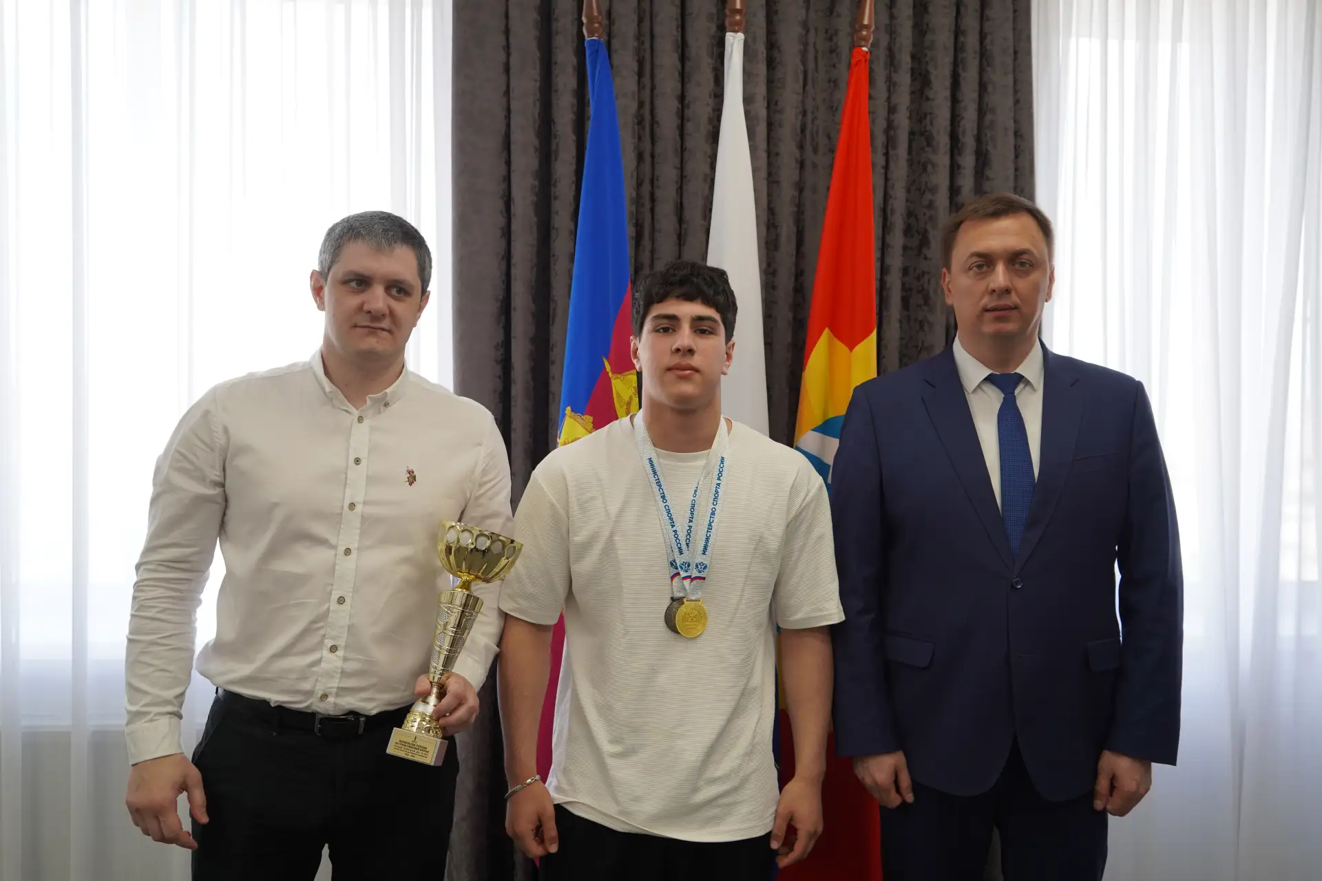🥇 Встретился с нашим чемпионом Аммаром Мендоховым и его тренером Игорем Голуб, чтобы поздравить с высочайшим результатом.