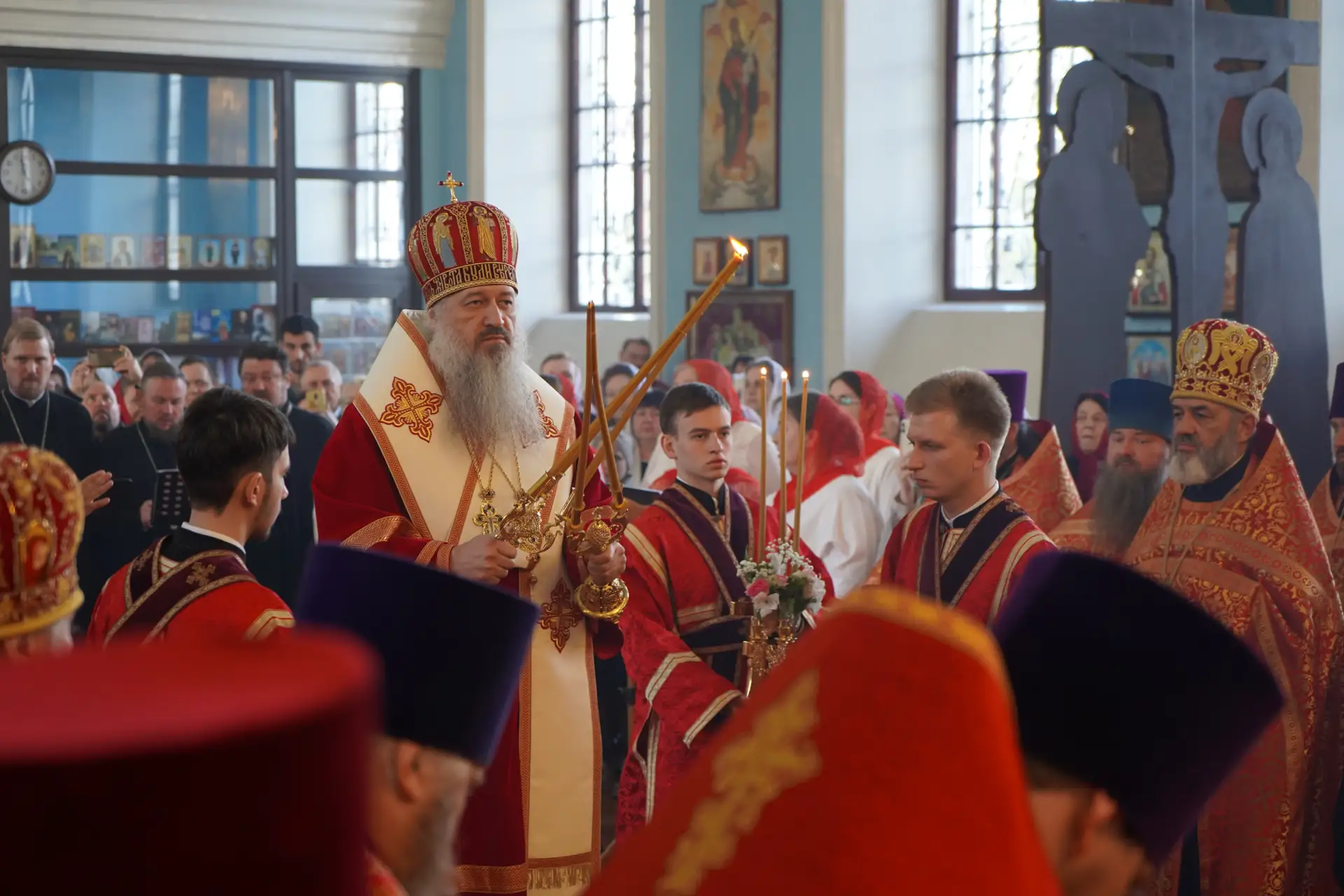 Встретил почетного гостя и принял участие в праздничном богослужении.