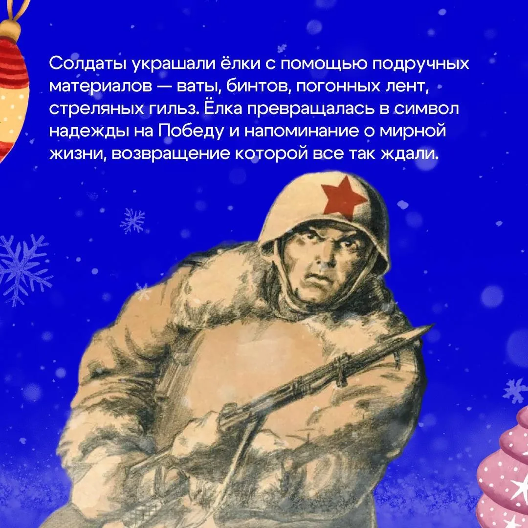 Читайте наши карточки — давайте вспомним, как праздновали Новый год наши героические предки, благодаря подвигу которых мы до сих пор отмечаем главный зимний праздник!