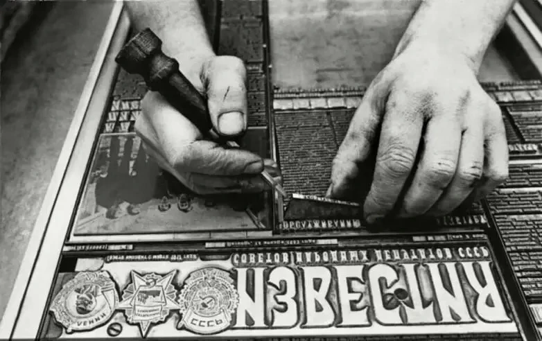 Газета «Известия» готовится к печати. Наборный цех, 1980е гг.