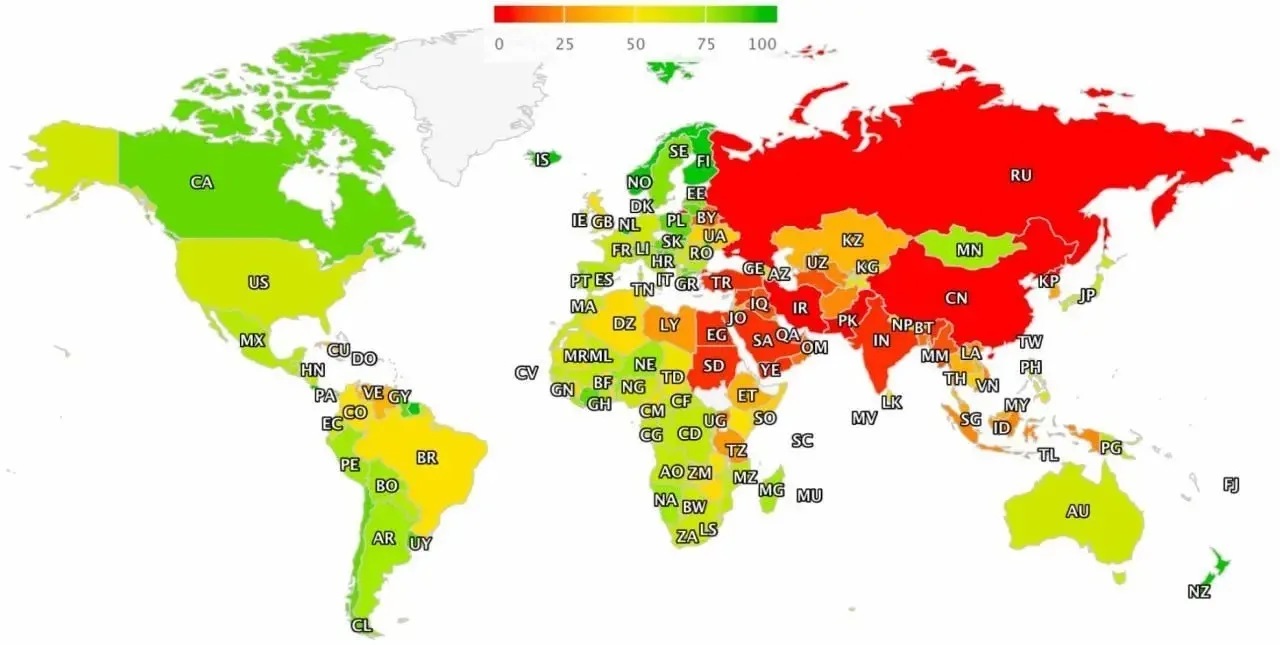 Рейтинг учитывает доступность контента для взрослых, торрентов, свободу онлайн-выражения и работу VPN-сервисов.