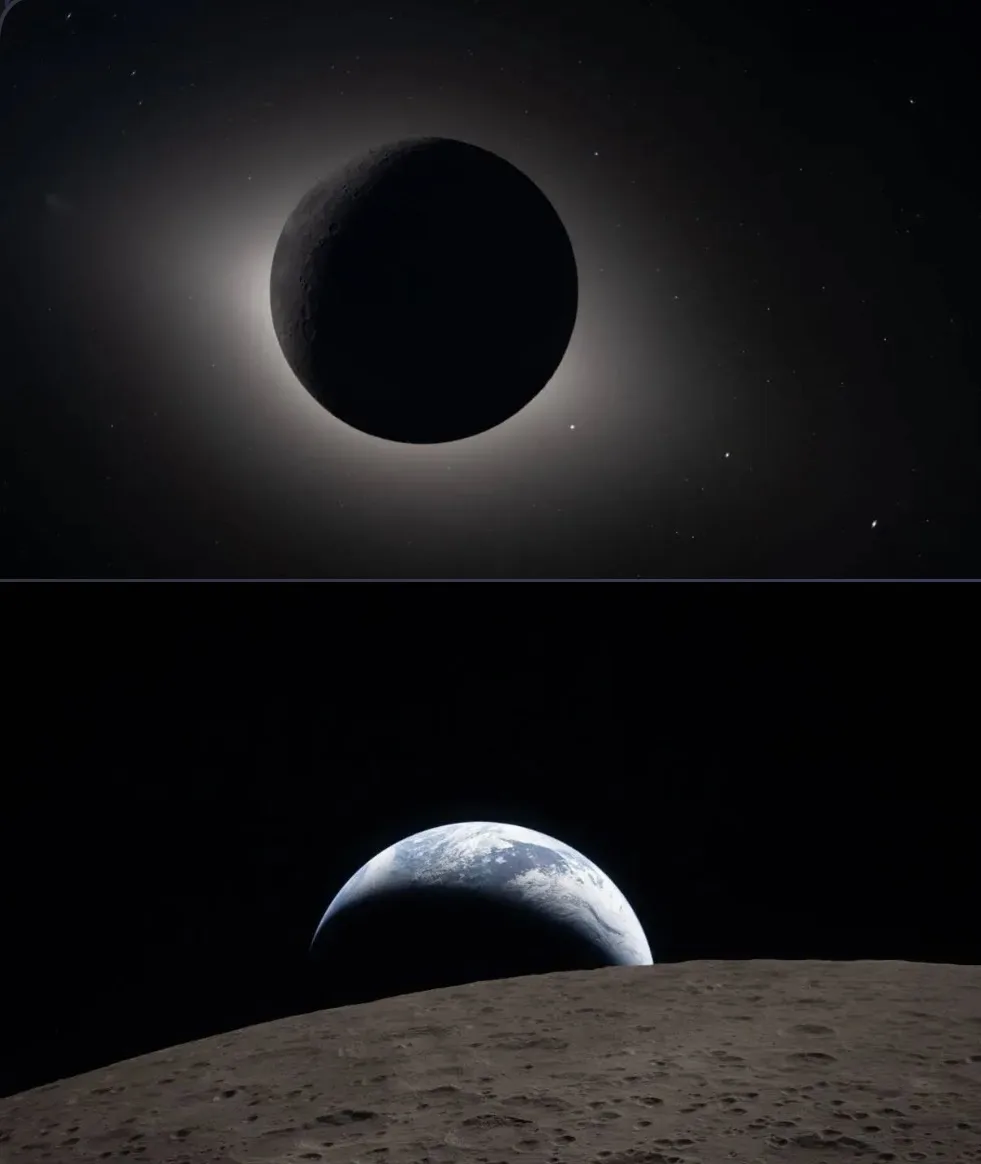 Исторические кадры полного лунного затмения и закат Земли, снятые с борта «Orion».