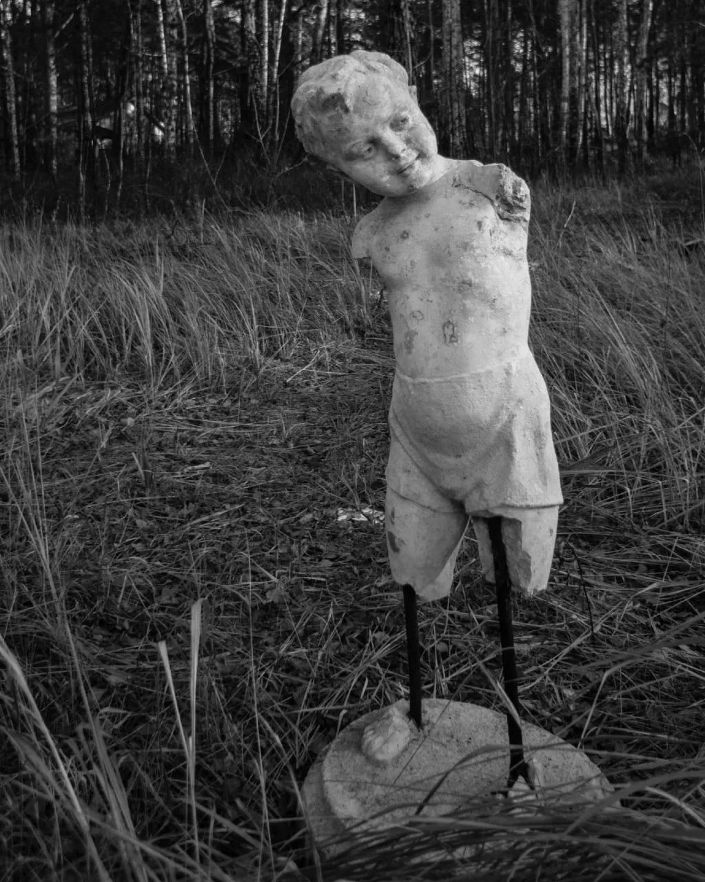 Драматично и пугающе. Выброшенные в болото советские статуи из пионерлагеря «Орлёнок», Челябинская область.