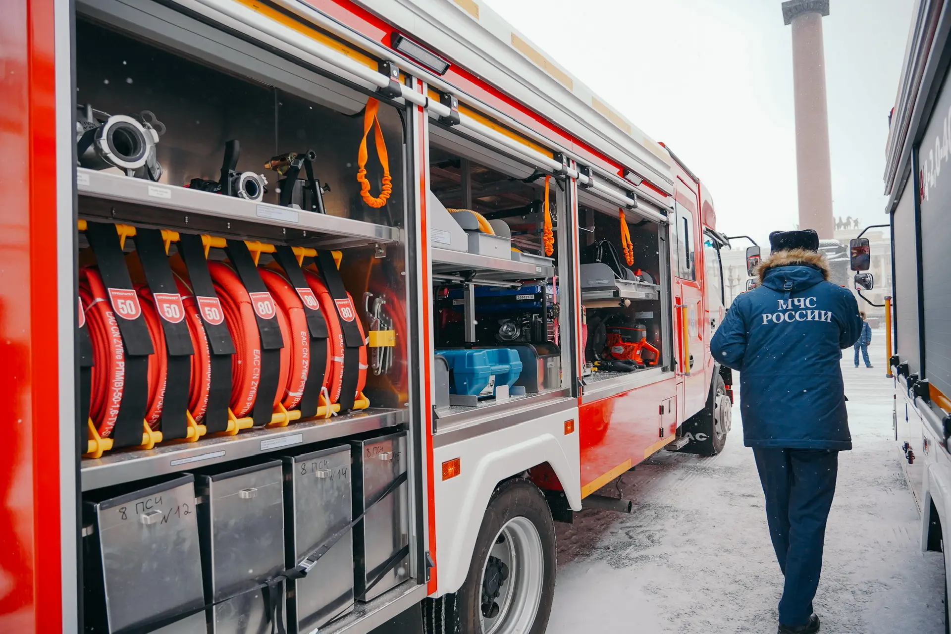 57 единиц пожарных автомобилей, квадроциклов, автоцистерн и другой новой техники сегодня получил Санкт‑Петербургский пожарно-спасательный гарнизон.