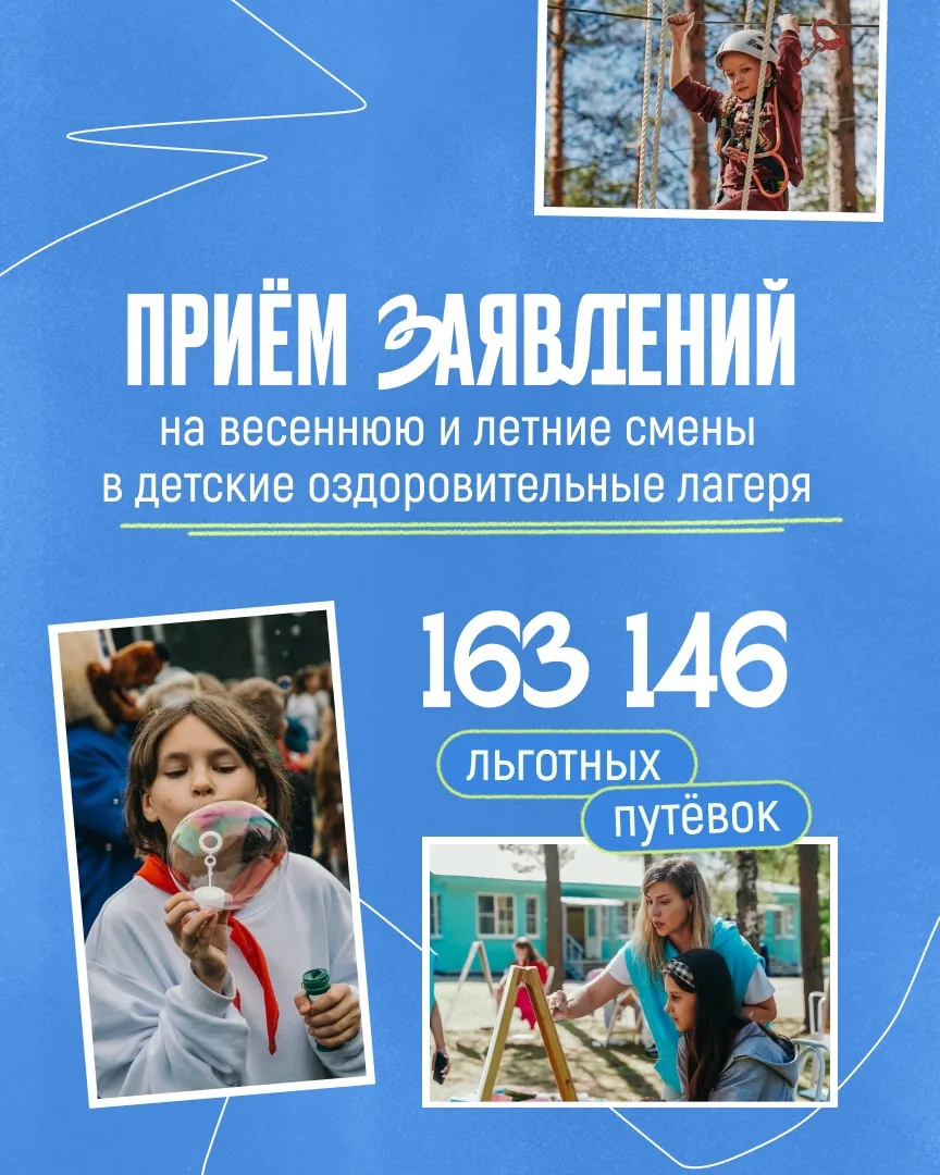 ✅ Начали приём заявлений на льготные путёвки для ребят на весенние каникулы и все летние смены.