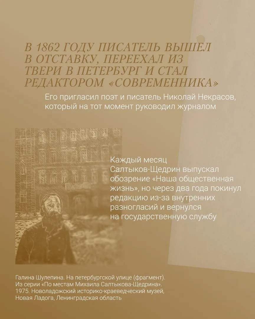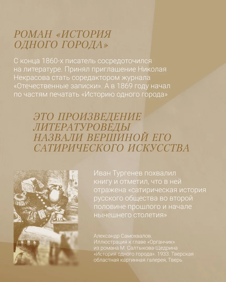 Михаил Евграфович развил жанр социальной и политической сатиры, соединил гротеск, иронию и точную психологию. Его герои стали нарицательными, а темы – узнаваемыми: власть и народ, лицемерие и совесть, страх и ответственность.