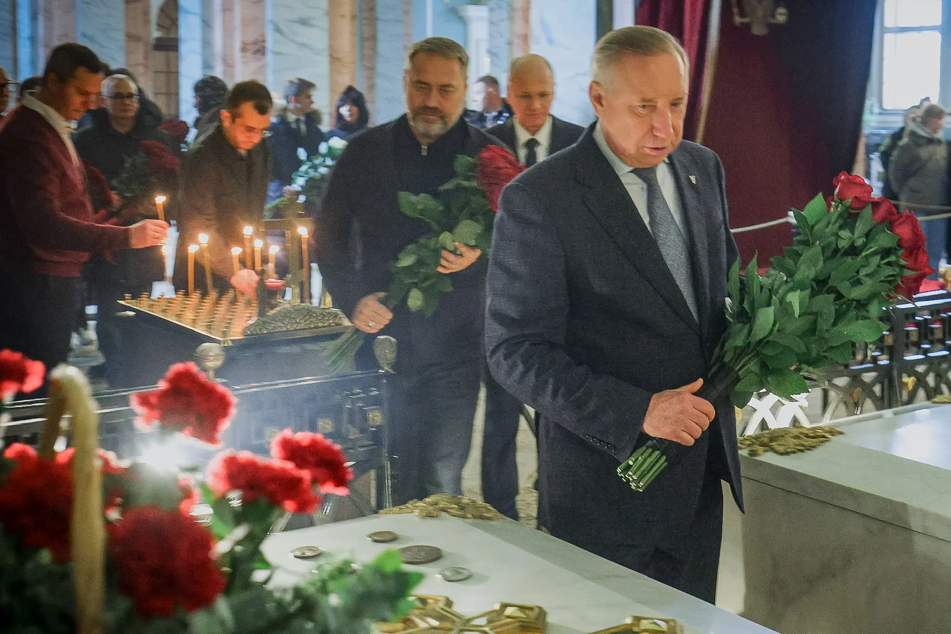 Возложили цветы к надгробию Петра Первого в Петропавловском соборе и к «Медному всаднику» на Сенатской площади.