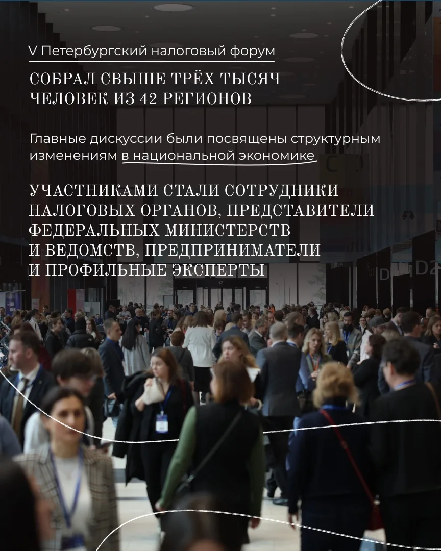 1. Состоялся V Петербургский налоговый форум. Он собрал более трёх тысяч специалистов из 42 регионов.