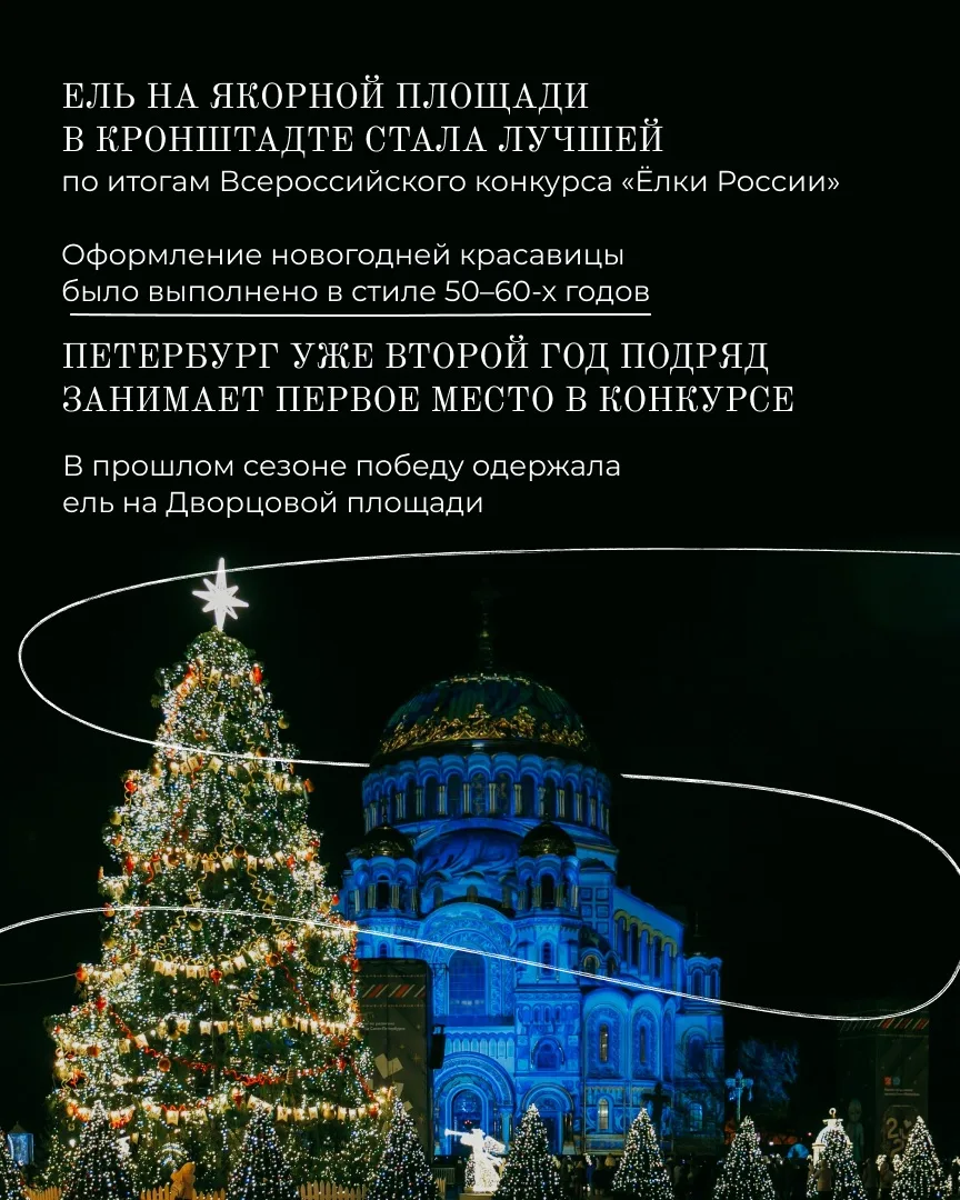 2. Новогодняя ель в Кронштадте победила во Всероссийском конкурсе «Ёлки России».