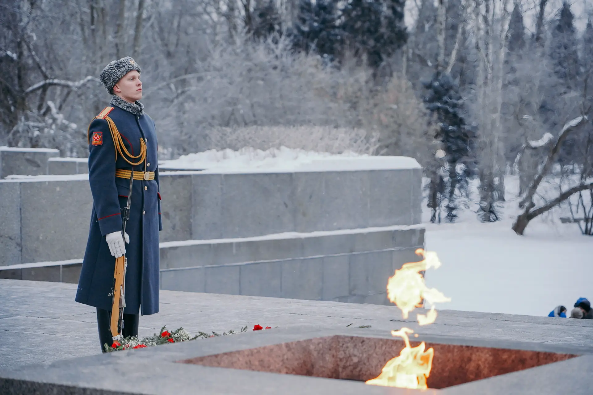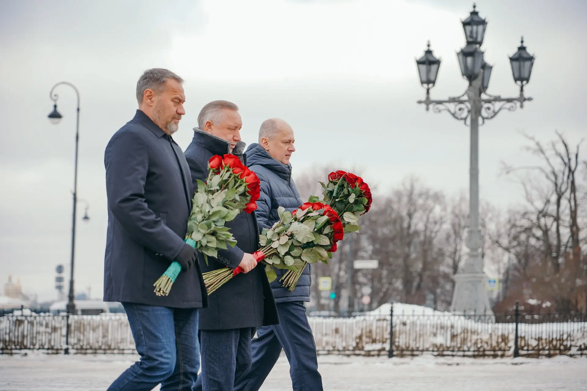 В День 83-й годовщины прорыва блокады Ленинграда возложили цветы и венки к Монументу героическим защитникам Ленинграда на площади Победы.