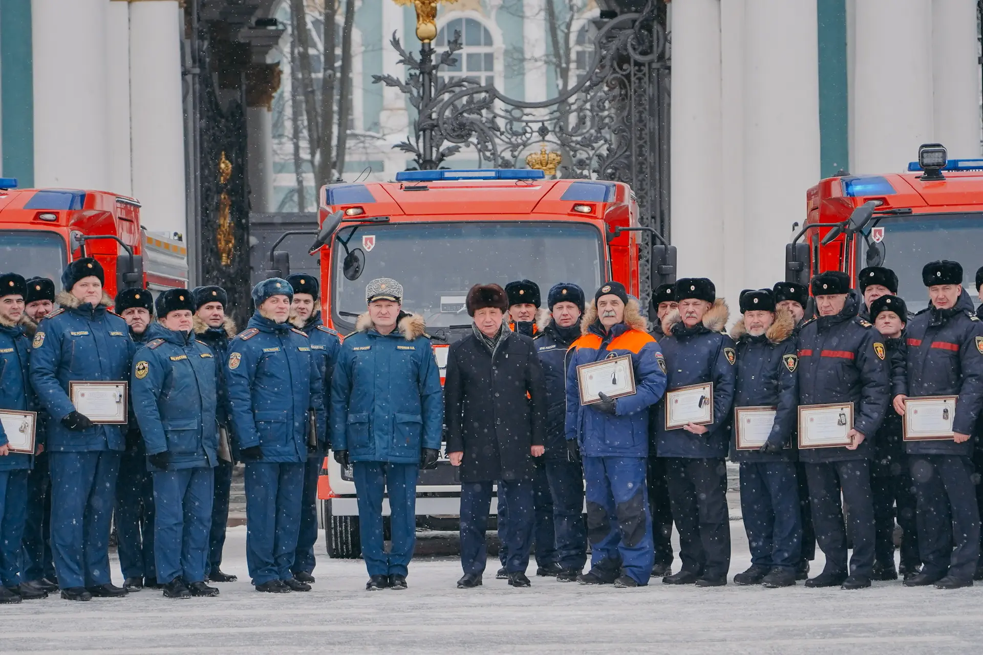 Вместе с министром по делам гражданской обороны, ЧС и ликвидации последствий стихийных бедствий Александром Куренковым передали её личному составу.