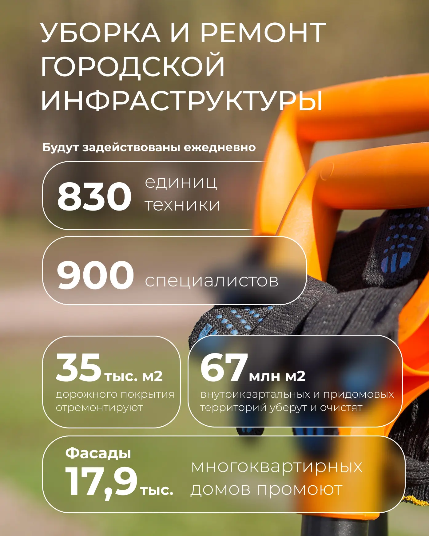 ✅ начнём первый этап работ по благоустройству Парка строителей;