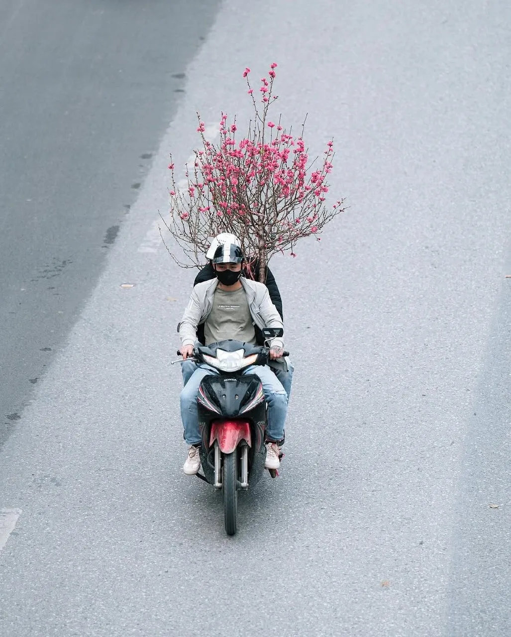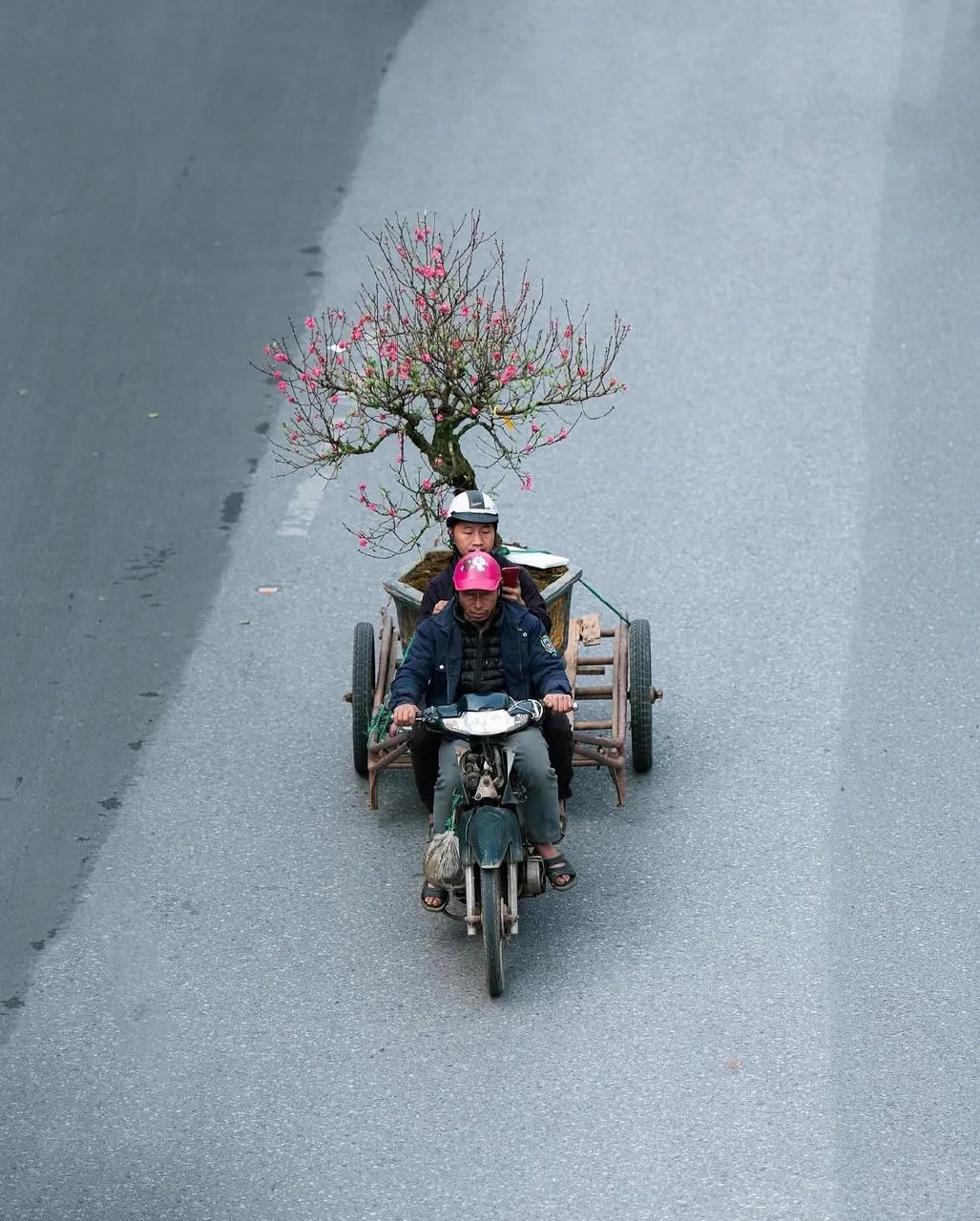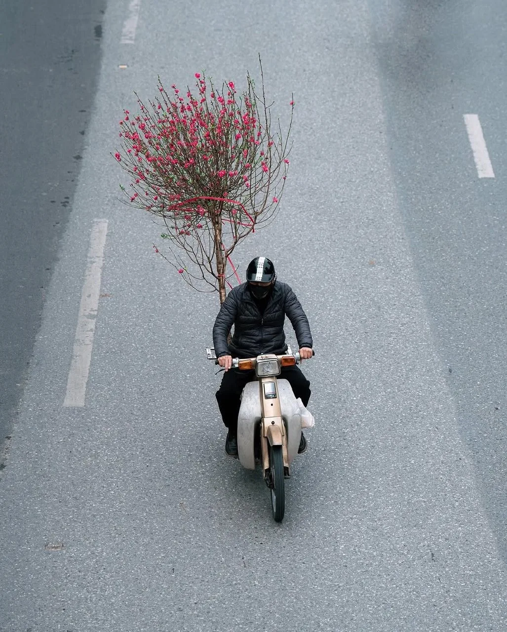 В эти дни улицы превращаются в цветущие реки: жители Ханоя везут домой на мопедах персиковые деревья, кумкваты и хризантемы. На севере Вьетнама символом весны считается именно цветущий персик (hoa đào) — его ветви заполняют все пространство вокруг сада Нят Тан.