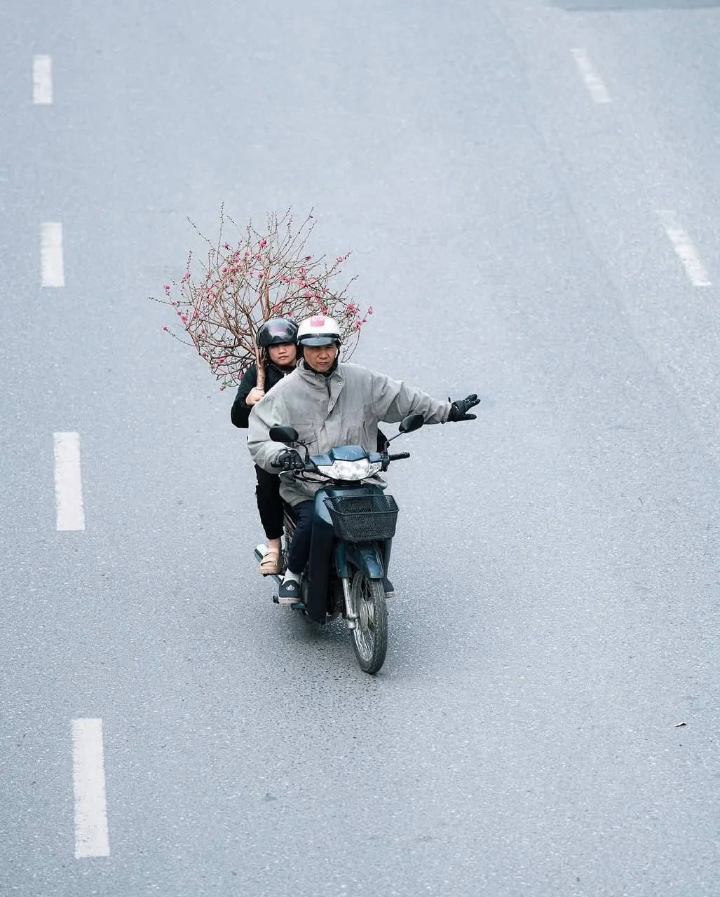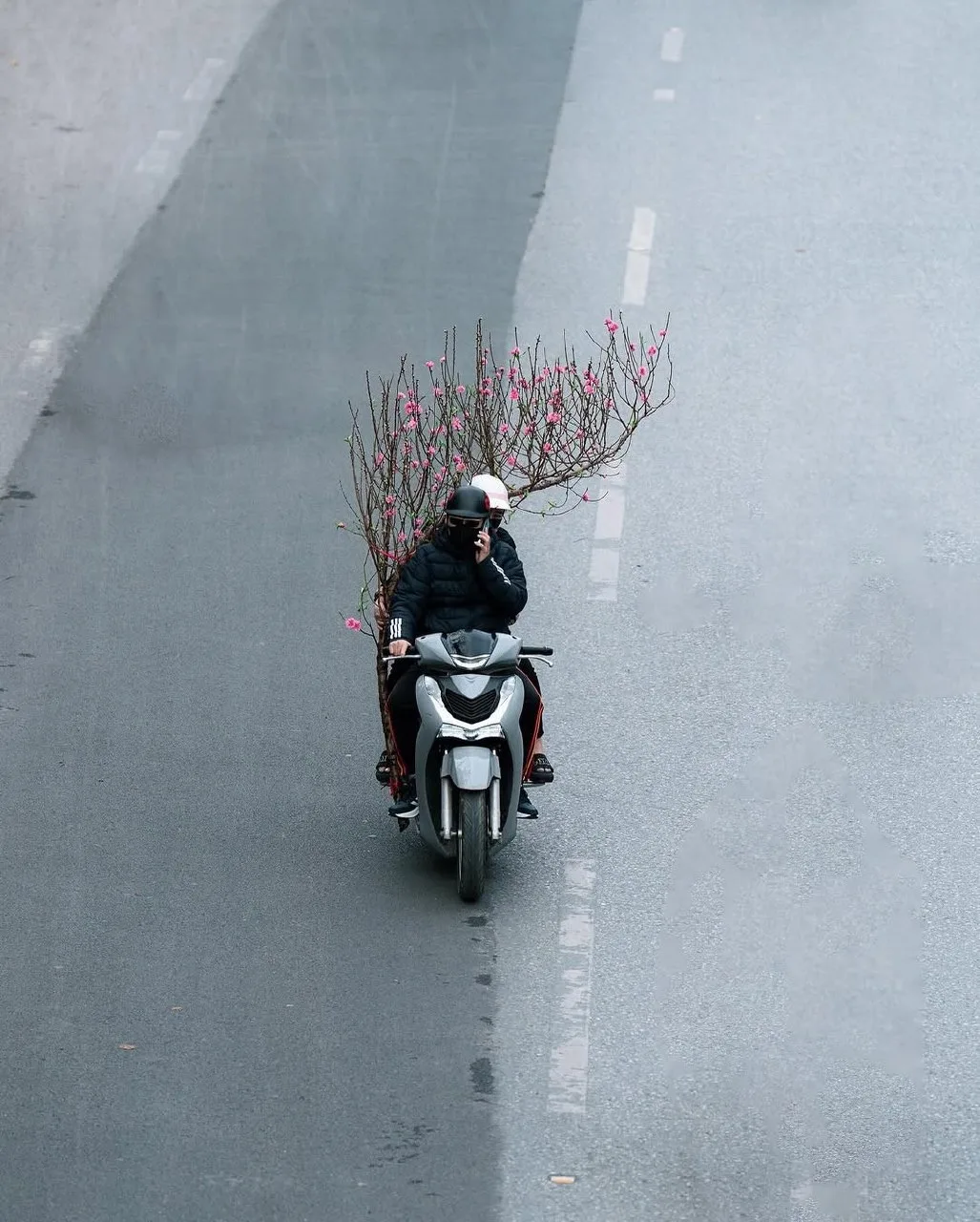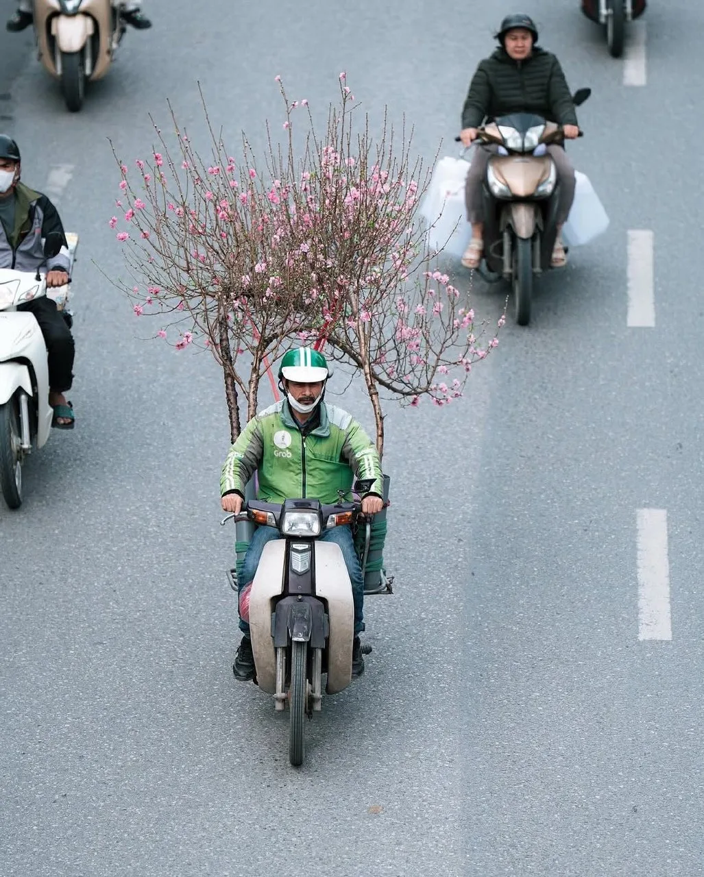 В эти дни улицы превращаются в цветущие реки: жители Ханоя везут домой на мопедах персиковые деревья, кумкваты и хризантемы. На севере Вьетнама символом весны считается именно цветущий персик (hoa đào) — его ветви заполняют все пространство вокруг сада Нят Тан.