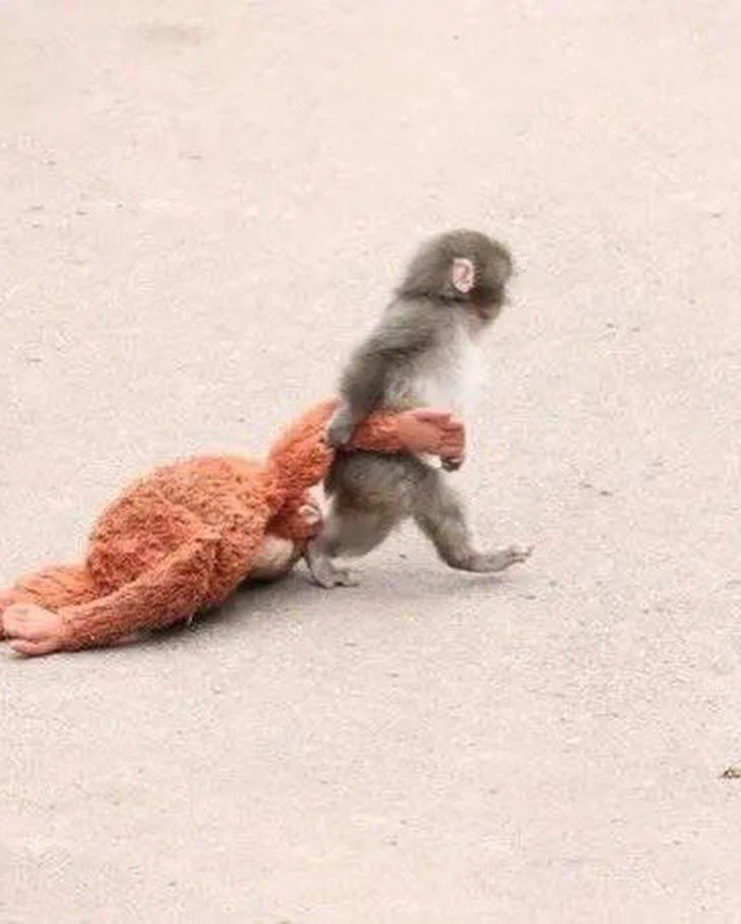 В соцсетях вирусятся трогательные кадры с детёнышем макаки по имени Панч из японского зоопарка: он повсюду носит с собой плюшевую игрушку. Мать отказалась от малыша, и сотрудники выкормили его вручную, дав игрушку, чтобы компенсировать нехватку физического контакта.