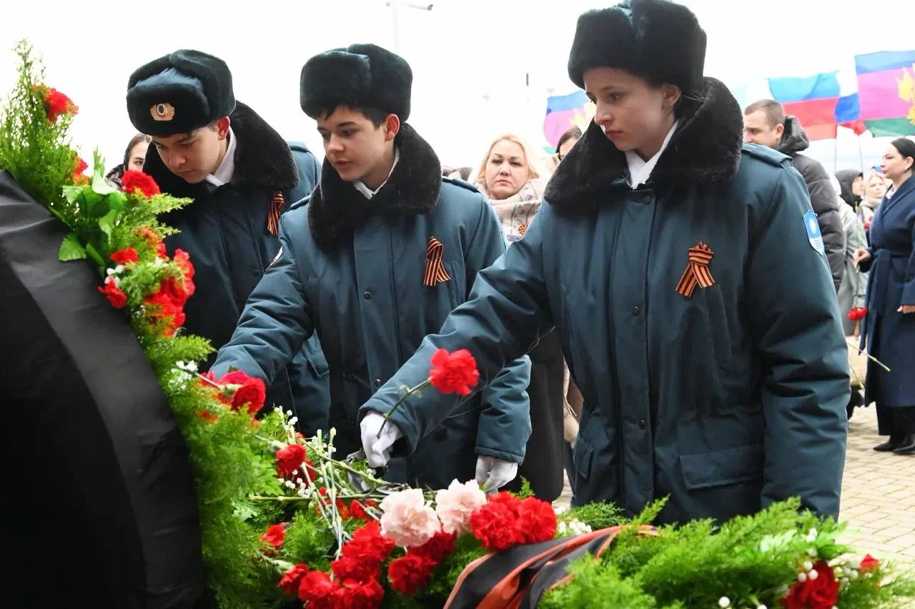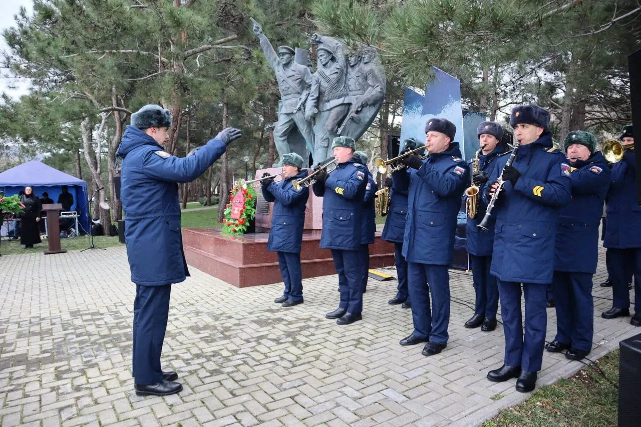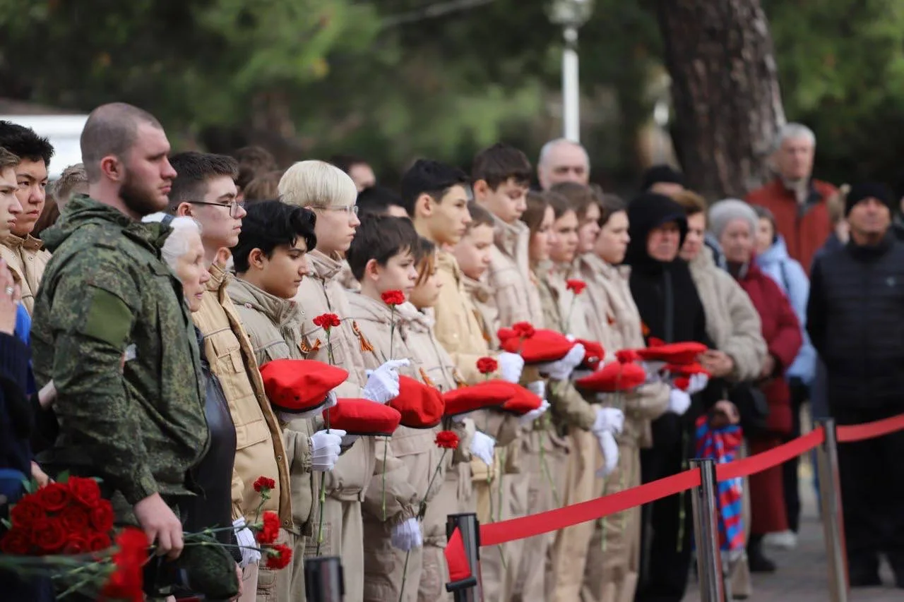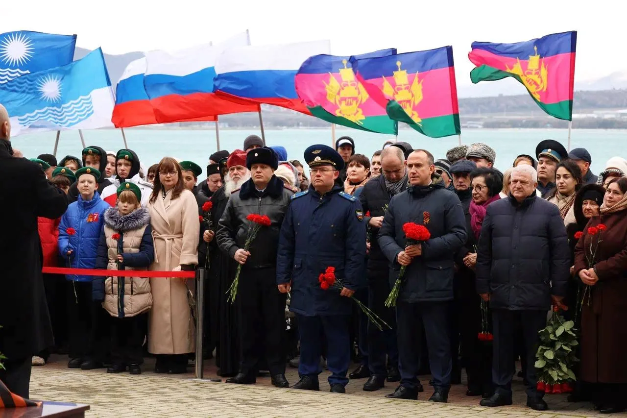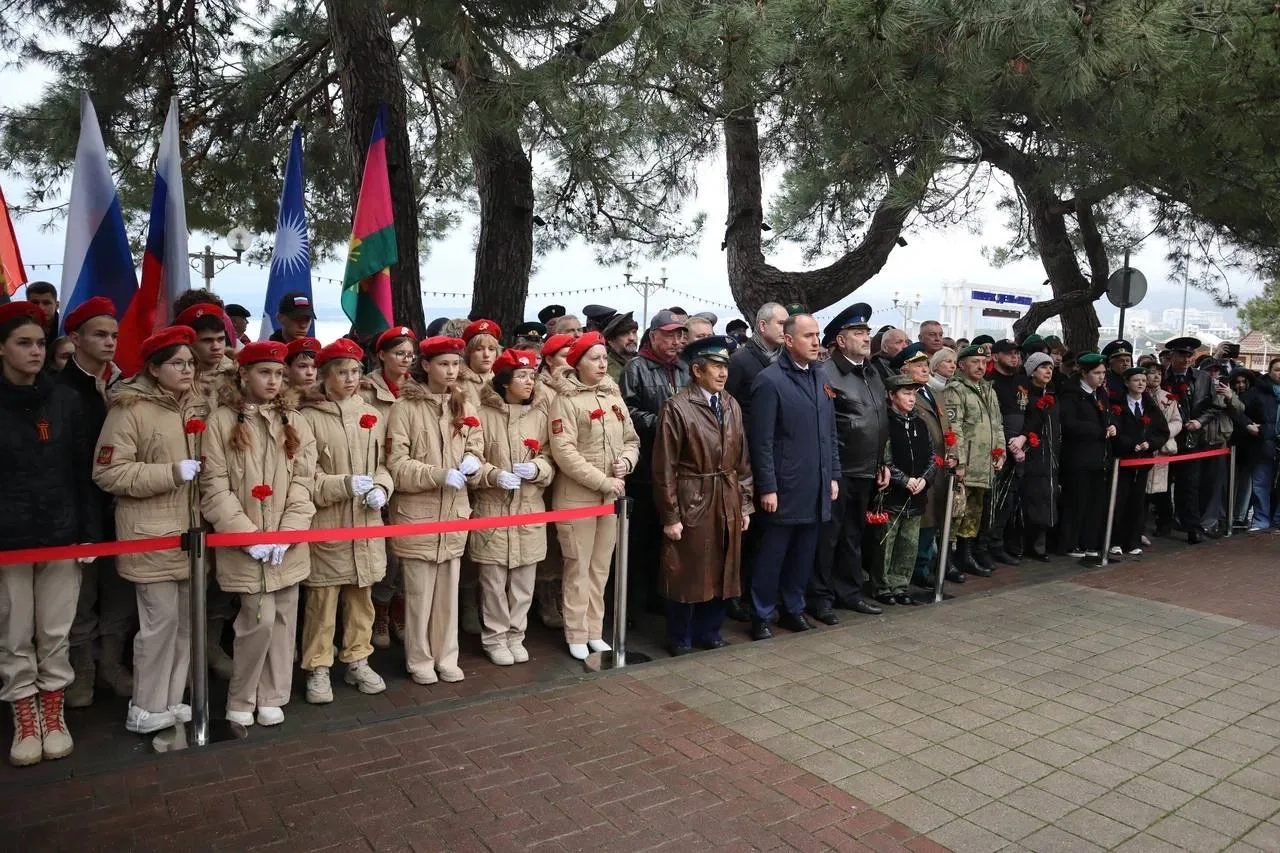 Вместе с участниками специальной военной операции, активом города, представителями национальных общин почтили память героев у памятника Морякам-Куниковцам на Толстом Мысе.