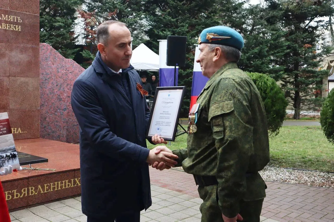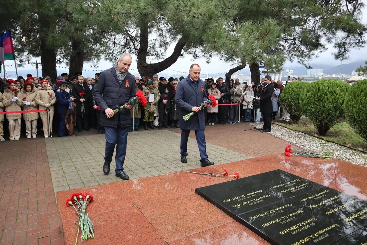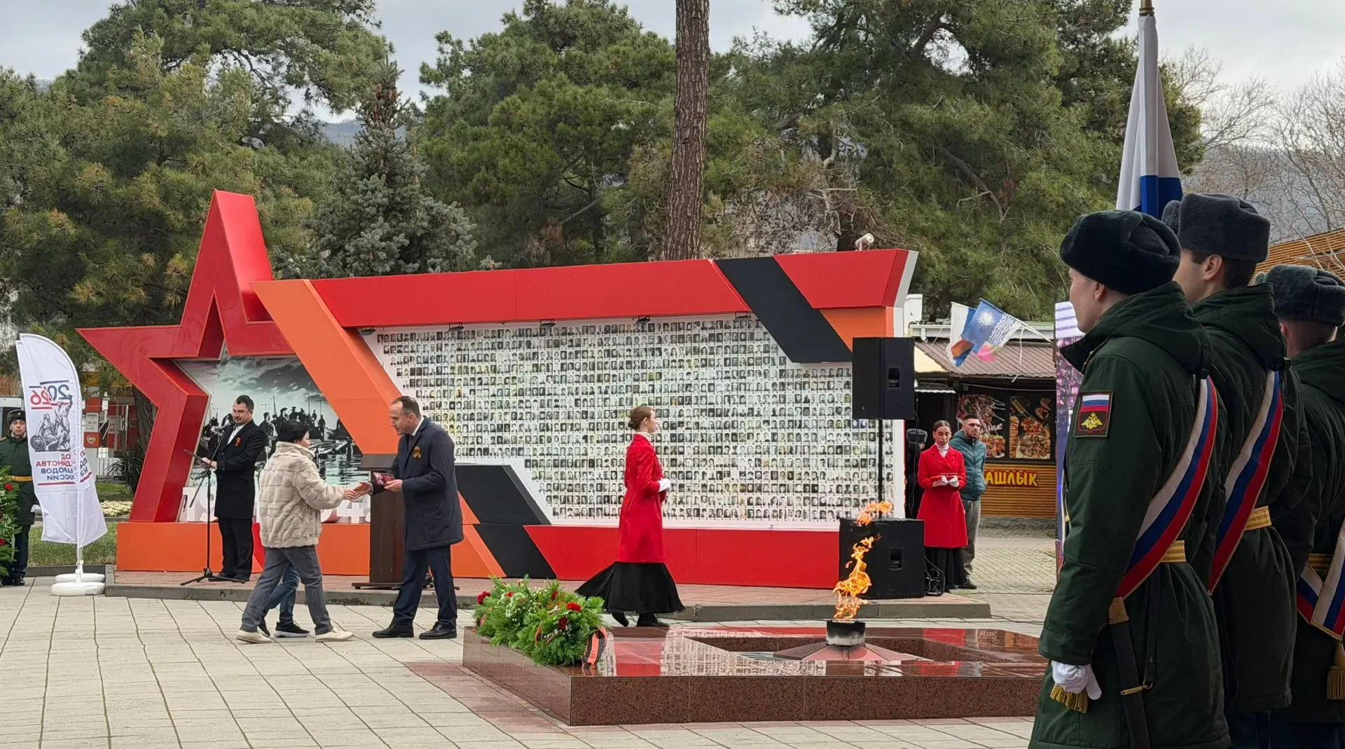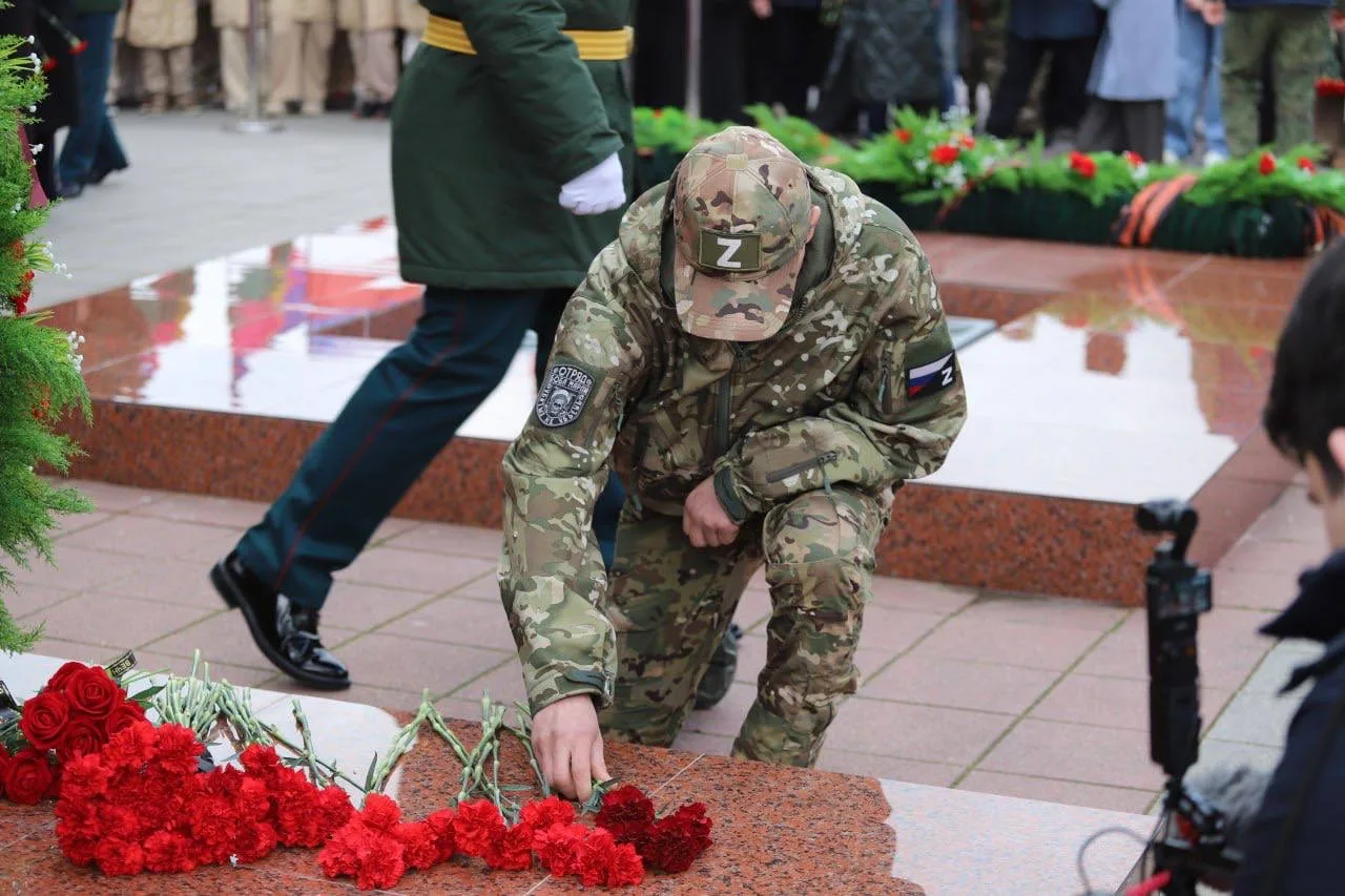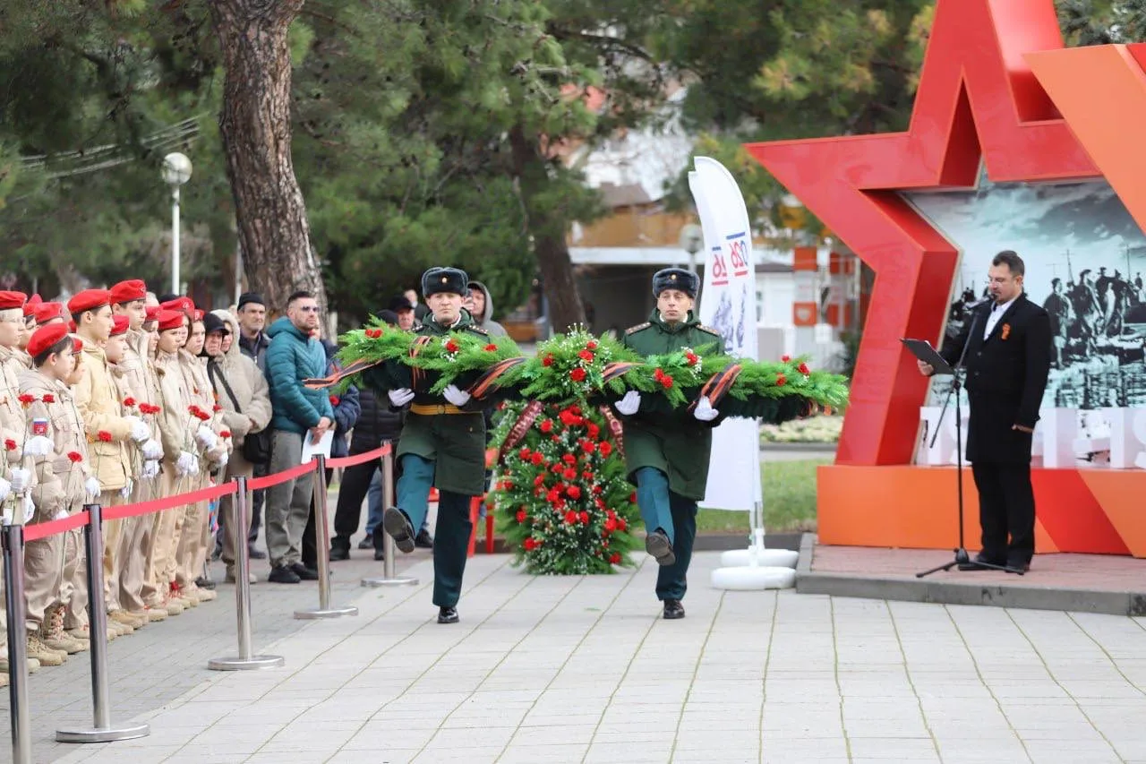 Вместе с участниками специальной военной операции, активом города, представителями национальных общин почтили память героев у памятника Морякам-Куниковцам на Толстом Мысе.