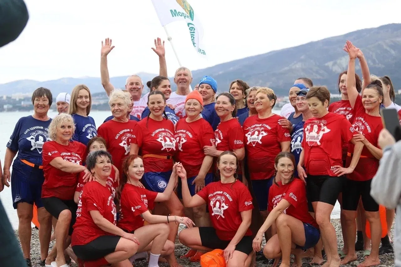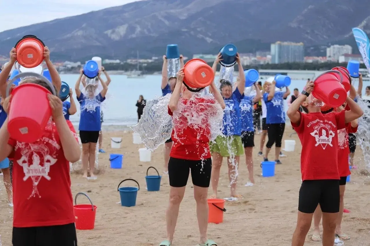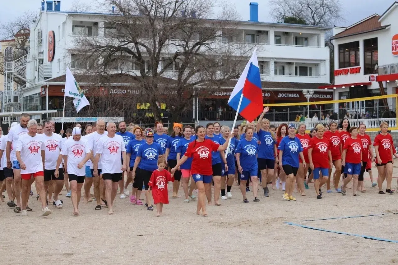 Главное событие - массовое одновременное обливание холодной водой, а затем заплыв в море. При температуре воды +10 градусов. Смелости участникам было не занимать. Среди них - 10 детей, самой юной участнице всего три года, самой возрастной - 82 года.
